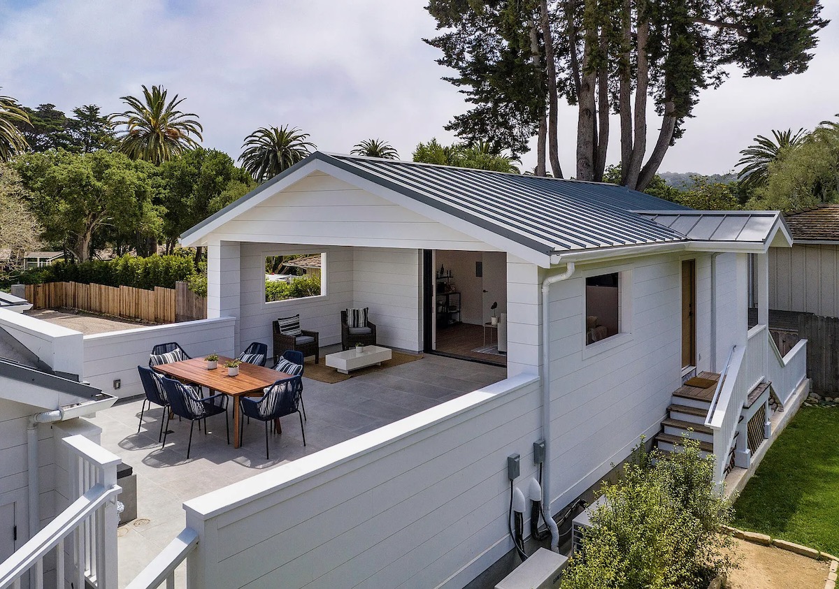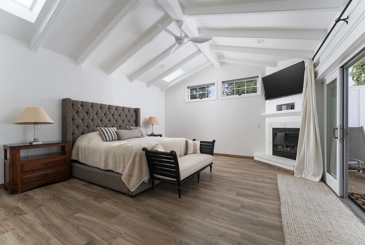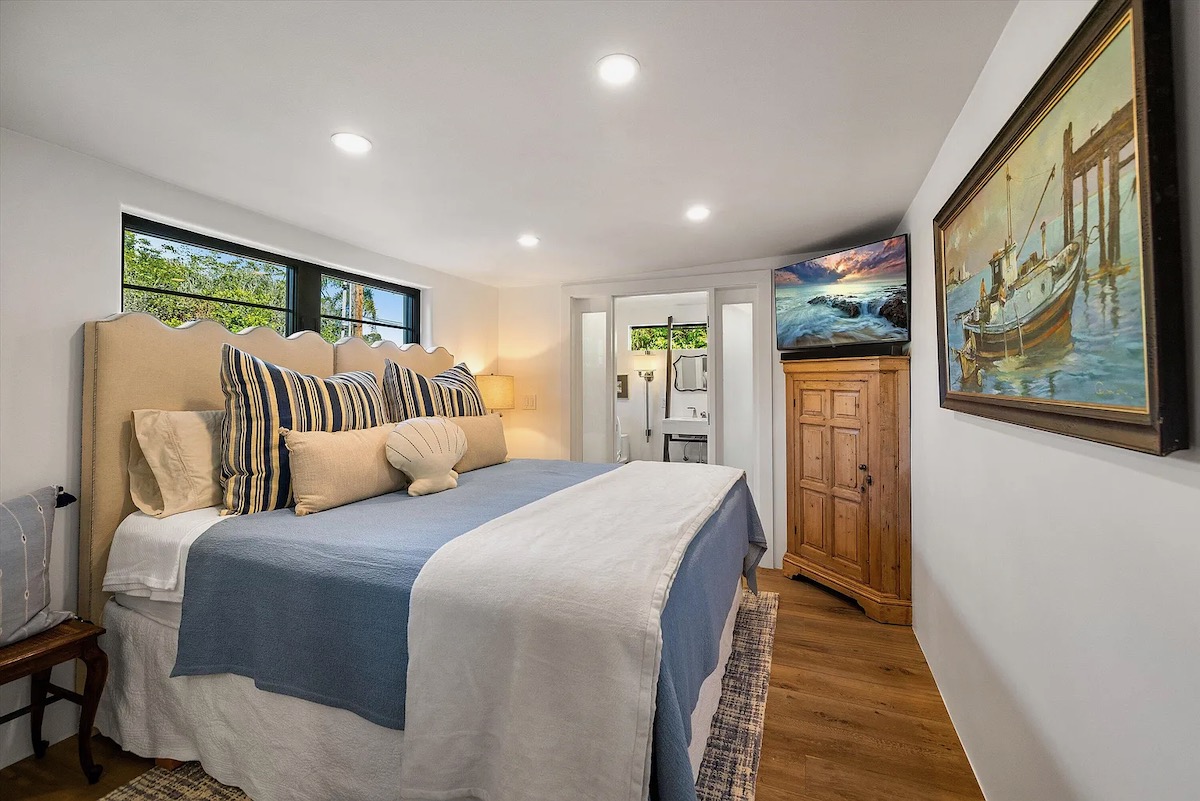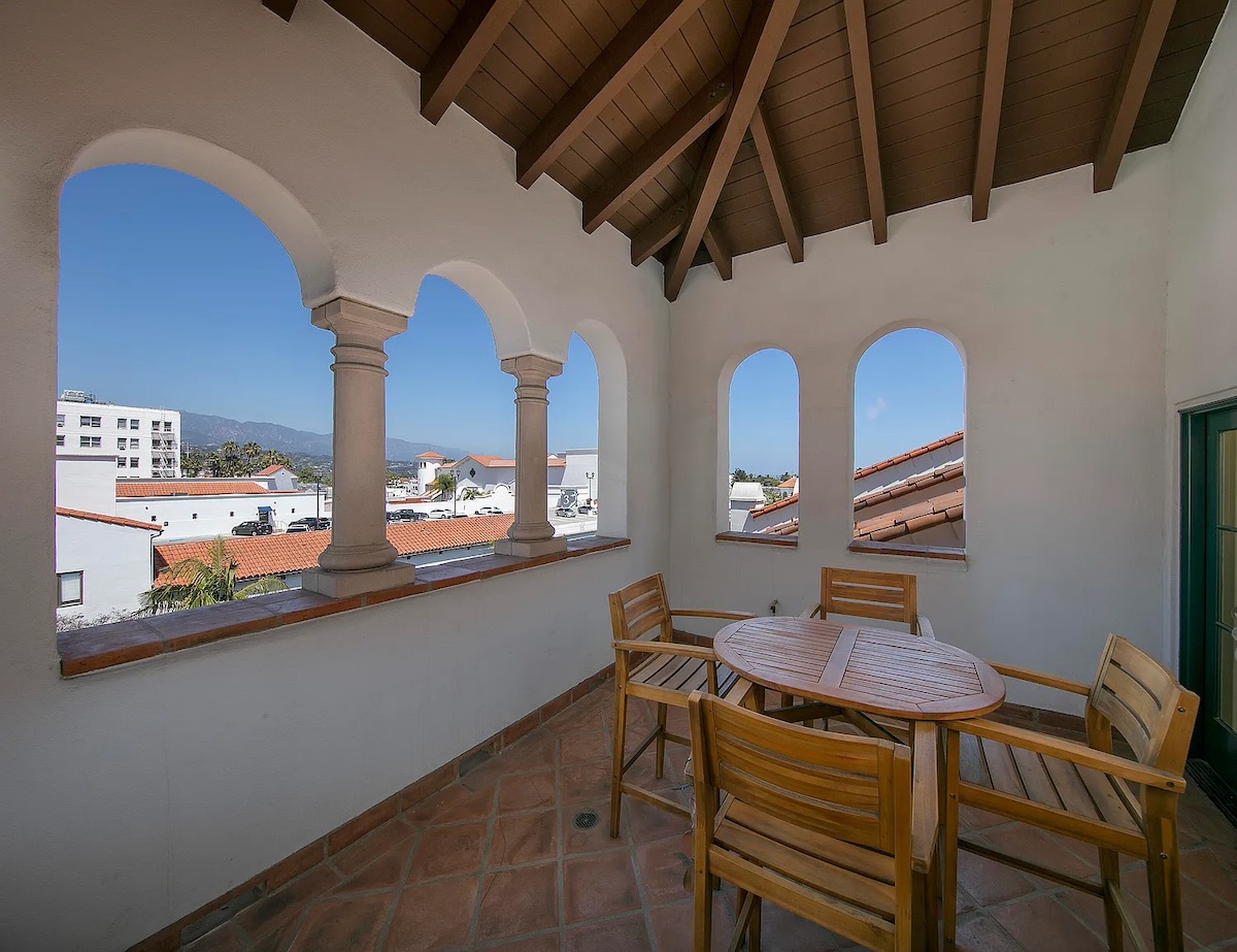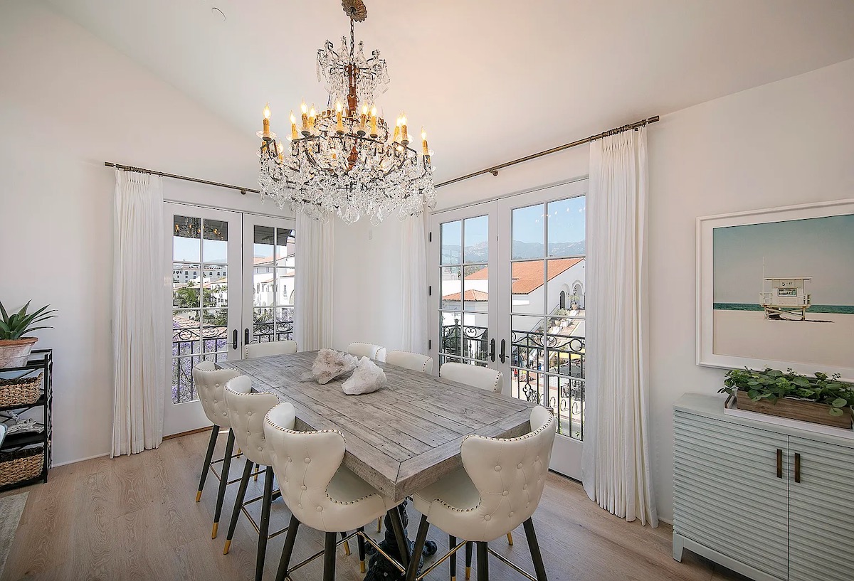 Talk about turnkey: the top-floor apartment at 105 W. De La Guerra Street Unit B2 ($3.995 million) was just totally redone, and it’s being sold furnished. Who needs a house when you have two en-suite bedrooms, a living room and family room, a primary bath with windows in both the shower and water closet (not to mention a “Champagne refrigerator”), two parking spaces, and a private deck up in the tower?