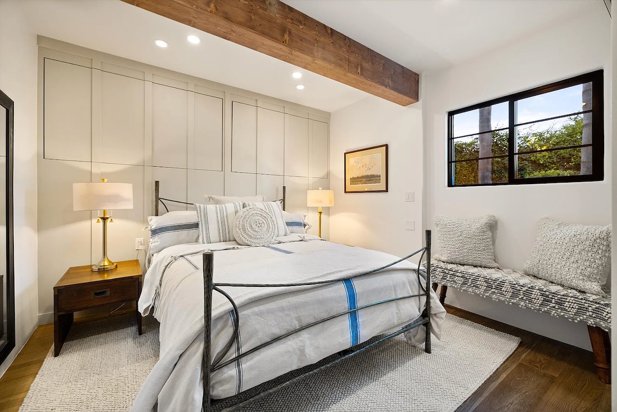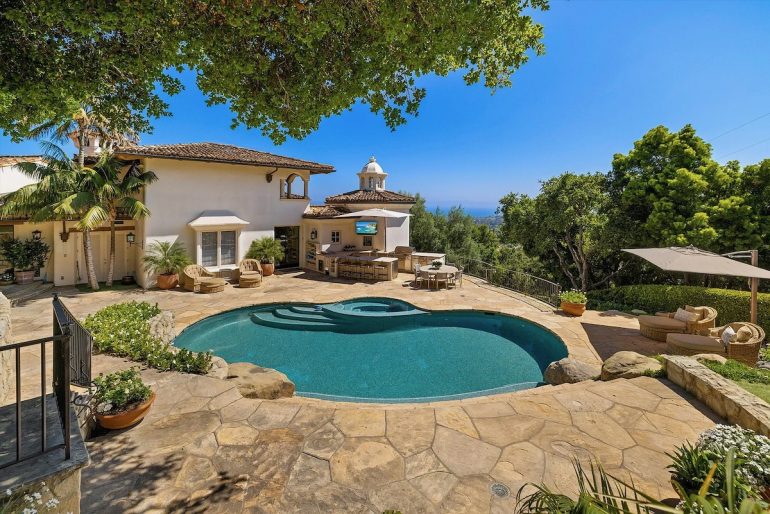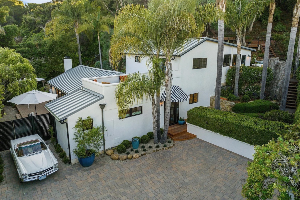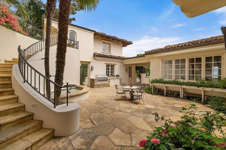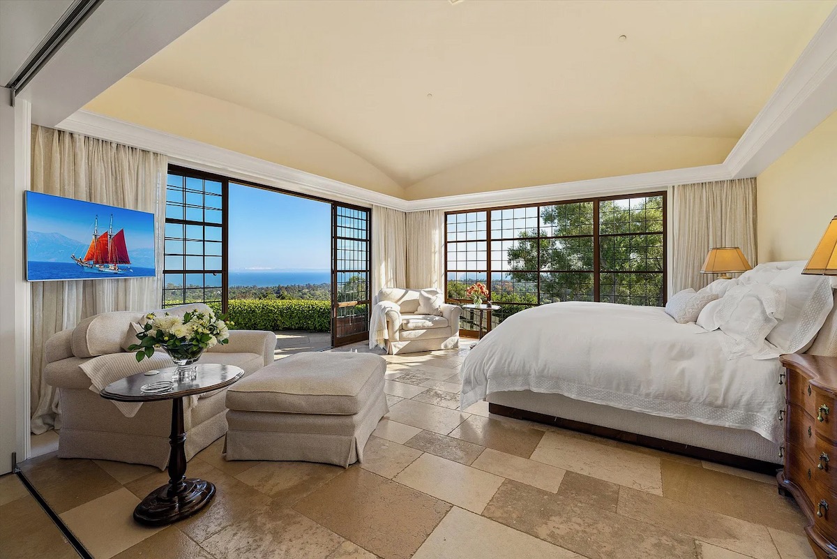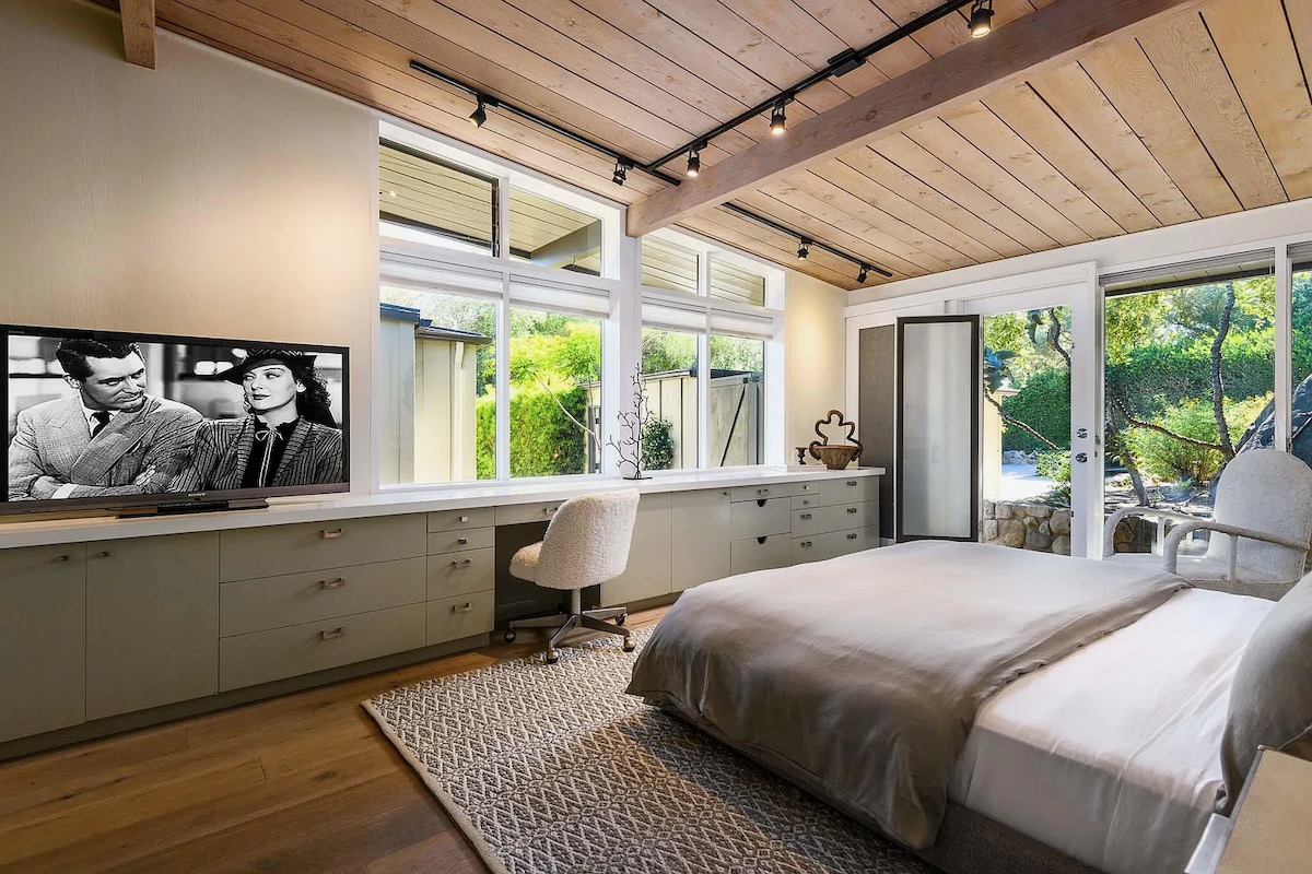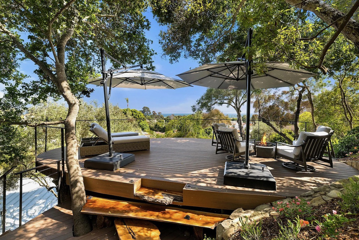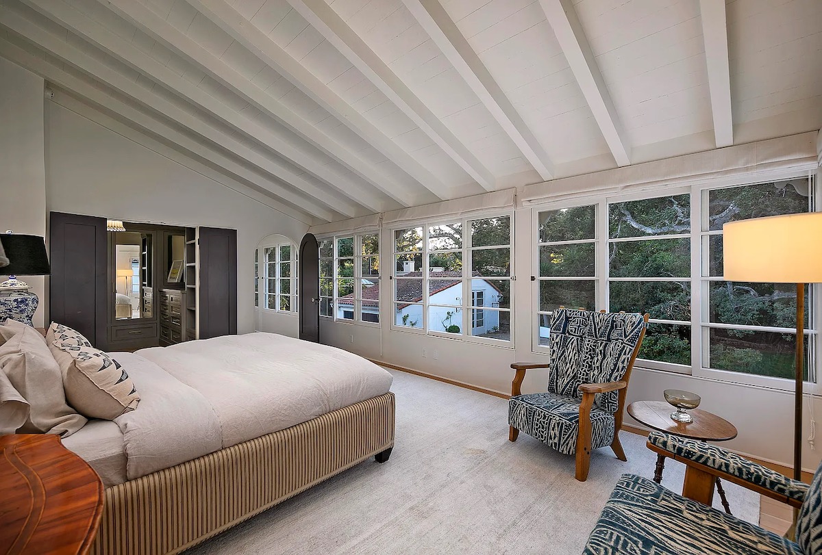 You’d think that one significant appeal of 1274 Eleven Oaks Lane ($6.7 million), directly behind Los Arroyos restaurant on Coast Village Road, would be the proximity to the many dining options a short walk away. And yet someone thought the house needed four kitchens—one on each level inside, and two outside. The interiors have panache, although I’m curious about how the cabinets above the primary bed work and why you’d want to block the lone window in that guest room. Up the hill behind the house is a cool deck.