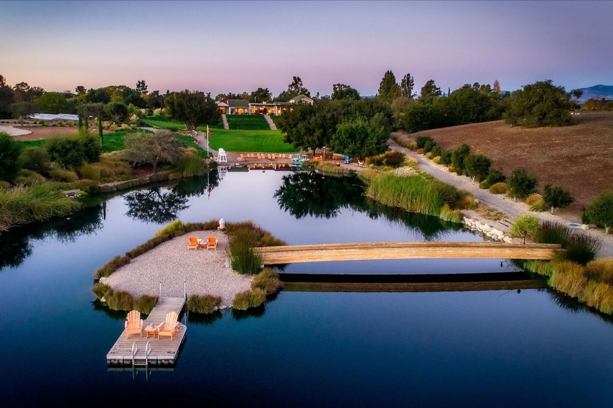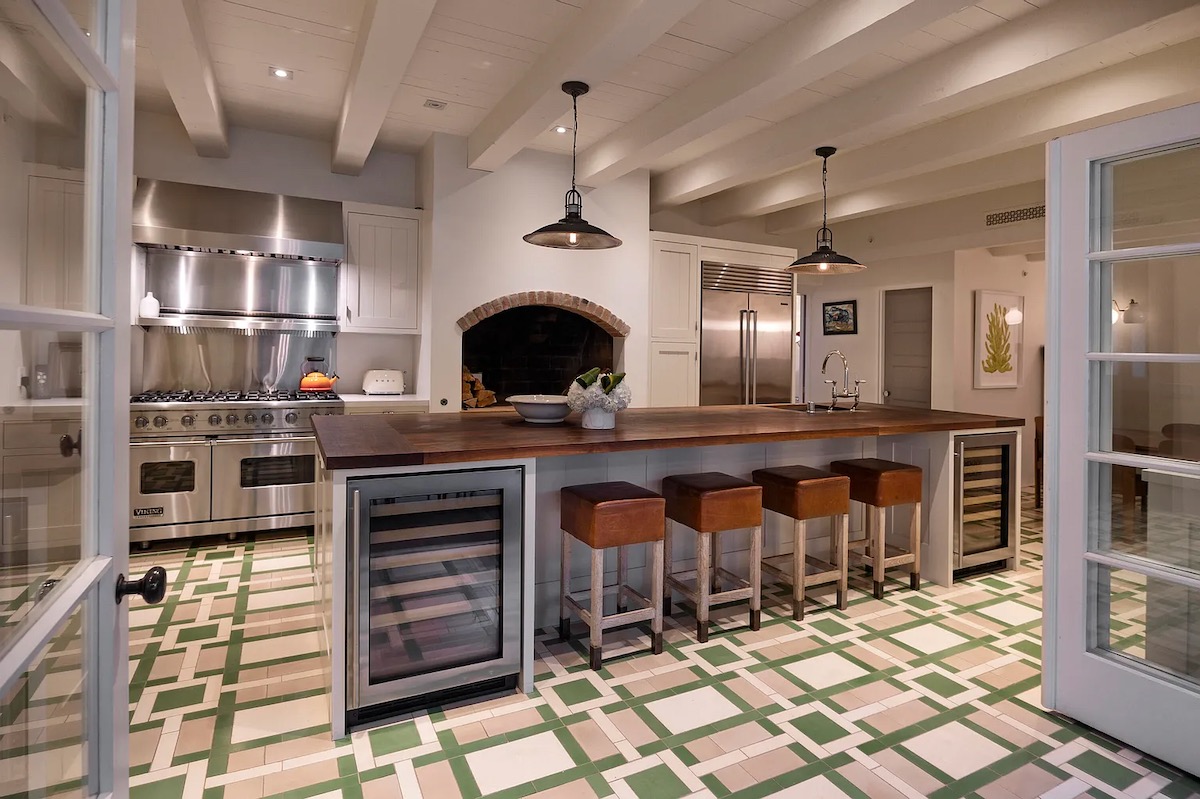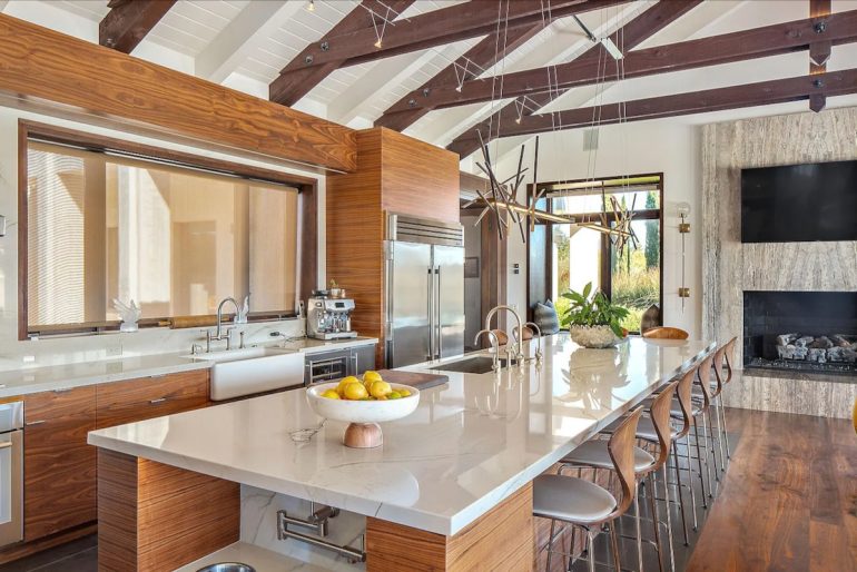 2794 Kara Lane ($16.9 million), on 26 acres between Santa Ynez and Solvang, is built for fun, with “an unbelievable two-acre private lake with beach, equipped for swimming, fishing, and other recreational activities. There is also a rockstar party barn, sport courts, and a fully furnished airstream with hot tub that can sleep additional guests.” (Sleep in a hot tub? No thanks.) As for the main house, who can resist “a new modern chefs’ kitchen that includes a unique separate area for the family pets to dine”? More photos can be found here.