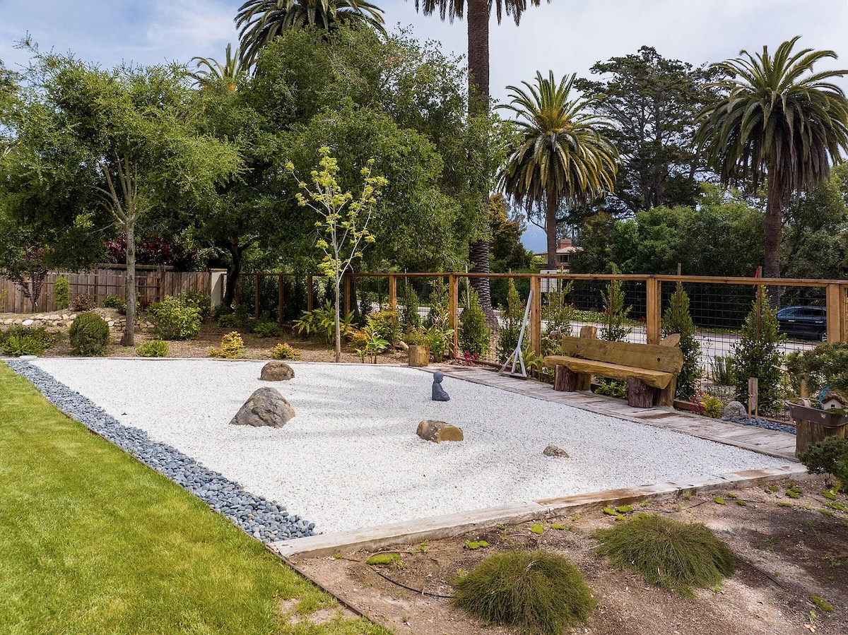 Located on Hope Ranch’s main drag, 767 Las Palmas Drive ($9.25 million) is new construction in the “modern farmhouse” style that’s everywhere these days. A few idiosyncratic touches stand out, however: the cracks in the basement’s concrete floor (vestigial? intentional?); the “one-bedroom” unit above the garage (deep inhale before you try to reach the closet); and the rock garden—a surprisingly rare xeriscape strategy—with what I assume is a baby Buddha sculpture.