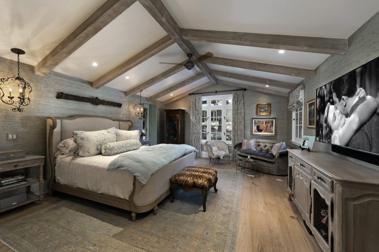 Also on the estate is a charming barn converted into two more spacious guest suites, along with an outdoor kitchen and a Provence-style entertaining area set amid the oaks.