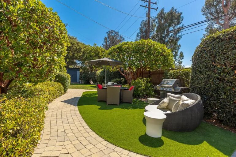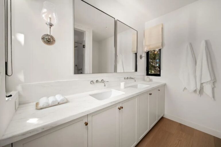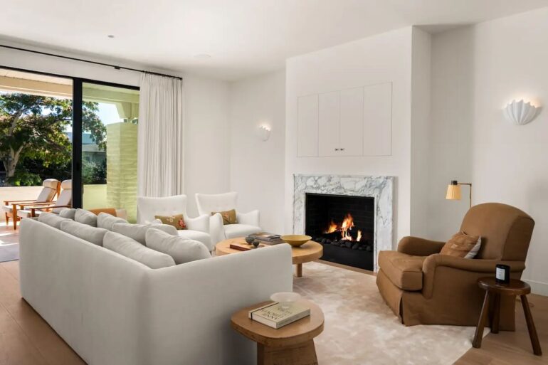 The two-bedroom, two-and-a-half-bath 1301 Plaza de Sonadores ($5.95 million) is one of the best-looking Bonnymede condos to have come on the market in recent years. Renovated with Jenni Kayne Interiors handling the design, it’s the picture of 2025 minimalism, down to the details. (Plus: a two-car garage.) This level of turnkey will cost you, however. The asking price per square foot is $4,274, not too far from the recent record of $4,655 set by 1363 Plaza Pacifica—and that condo, while smaller, is oceanfront. P.S. The recessed cabinet above the fireplace is a novel way to hide a TV.