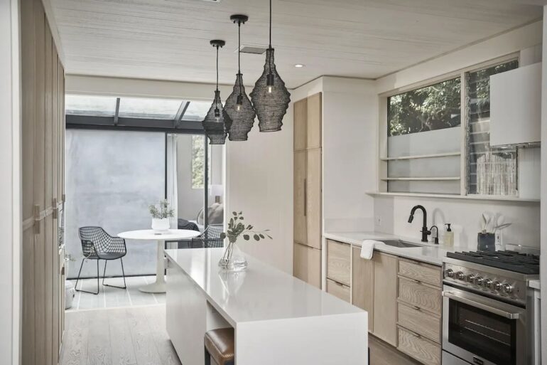 The seller of 2166 East Valley Road ($3.295 million) paid $2.1 million in early 2022 and leaned into midcentury style while redoing the interiors. The house is situated toward the rear of the .18-acre lot, which means the hangout space is in front (although some aggressive hedge pruning could open up opportunities in back).