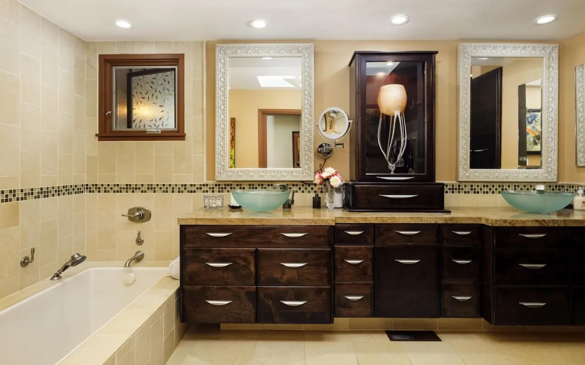 The primary bathroom at 1192 Edward Place ($2.495 million), on a cul-de-sac in Goleta, feels all wrong for the 1961 three-bedroom, which otherwise looks pretty solid. I’m not sure I’d agree that it’s “surrounded by orchards,” but the area around N. Fairview Avenue is definitely semi-rural.