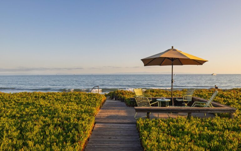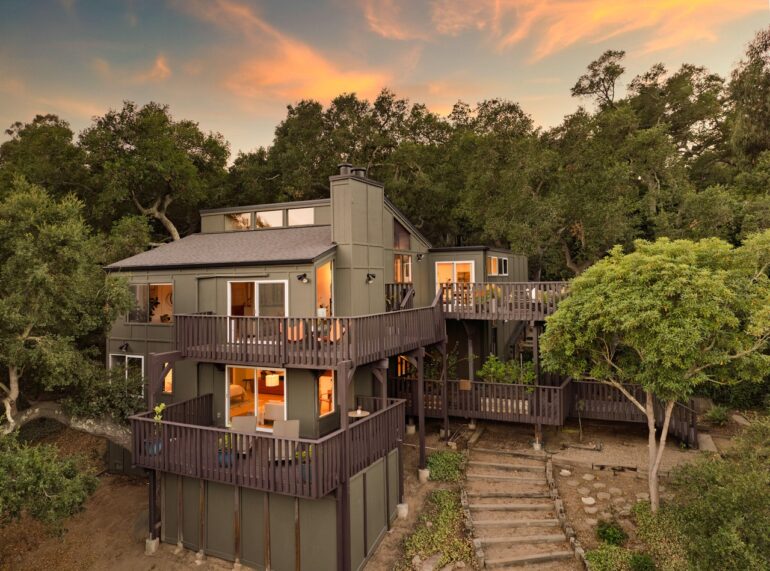 Behind the low-slung facade of 125 W. Mountain Drive ($6.385 million), actor Christopher Lloyd’s home west of Coyote Road, is a huge ocean view. For a property built in 2006, the surfaces look sharp. I haven’t seen it in person, so I’m not sure to what the degree the experience is affected by the way the shared private lane skirts the house, but I love how the micro-community fronts Parma Park. P.S. That’s a guest house on the north side of the motor court.
