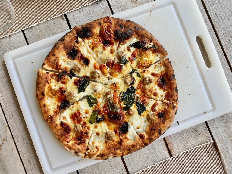 ••• I road-tested the frozen Bettina pizzas available via Kitchenette, and they’re very good—particularly the white pie with sausage. Are they as good as fresh at the restaurant? Of course not. But they’re far better than any frozen pizza I’ve ever had, and not all crackery, as I feared—some of the chew is still there. (And we don’t even have a pizza stone. Or a nice wooden cutting board to serve them on….) They go from freezer to table in 10 minutes, plus time for preheating, and I plan to always have a couple on hand in my freezer for emergency situations.
