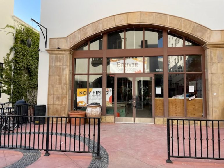 ••• Signs of life at Bruxie, the chicken-and-waffles chain long in the works at Paseo Nuevo. Thanks to P. for the photo.