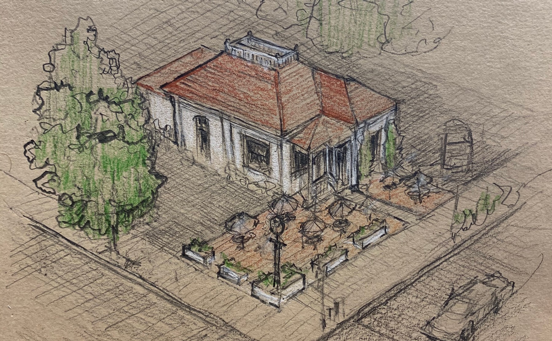 ••• The Santa Barbara Trust for Historic Preservation described its plan to spruce up the 1896 Moullet House at Santa Barbara Street and E. Canon Perdido (currently home to Panino): “We plan to reduce the amount of asphalt, expand the brick patio to restore the appearance of a front entry to this Victorian home, add above ground planters as vehicle barriers to expand outdoor dining, and restore a vintage planter and light fixture at the corner.” The organization needs $8,664 to reach its $10,000 goal; donate here. (Drawing by Anthony Grumbine.)