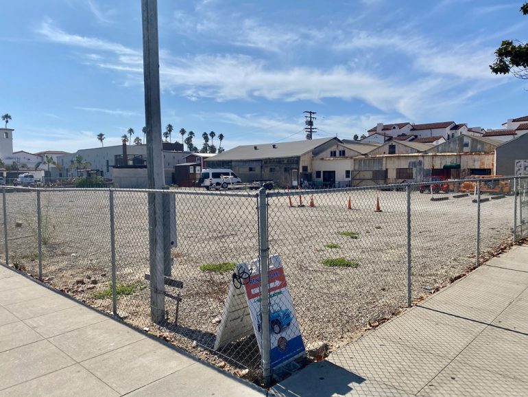 From the Planning Commission’s agenda: “The project consists of a new three-story development on a 0.5-acre vacant lot located at the southwest corner of Anacapa Street and E. Mason Street. The proposal includes two options (airspace condominium map or lot split/lot-tie agreement) for development of one building consisting of two small hotels, corner market/bodega, various types of restaurants (sit down, coffee shop, and fast casual kitchens), a tasting room, artist studios, an art gallery, and other retail space.”