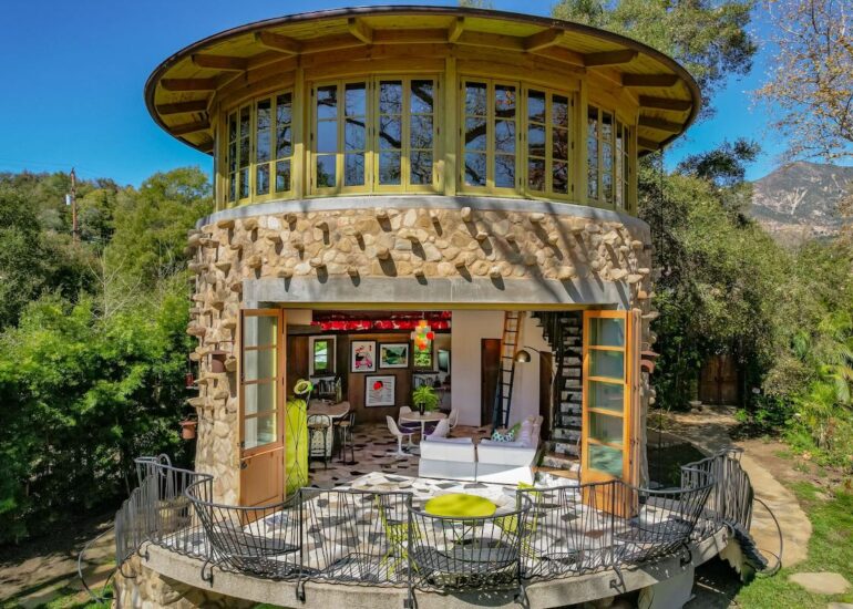 ••• The list of Jeff Shelton–designed properties for rent now includes his Stone Tower in Montecito, with interior design by Mary Beth Myers. Contact SB Concierge for more info.