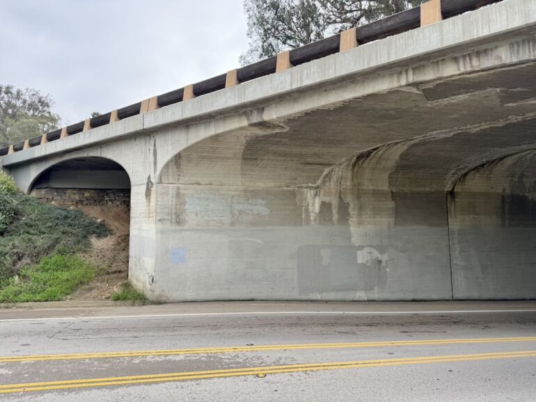 ••• In other freeway news, the start of the next phase of Highway 101 construction this spring will bring with it the end of the graceful, gorgeous southbound overpass at Hot Springs/Carrillo Boulevard. (The northbound one, in the third photo below, is less beautiful but I’ll still miss it.) I love the shape, but also the concrete, and even the patina. It has far more style than the design replacing it.