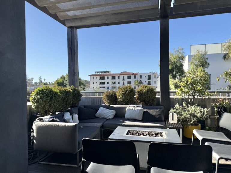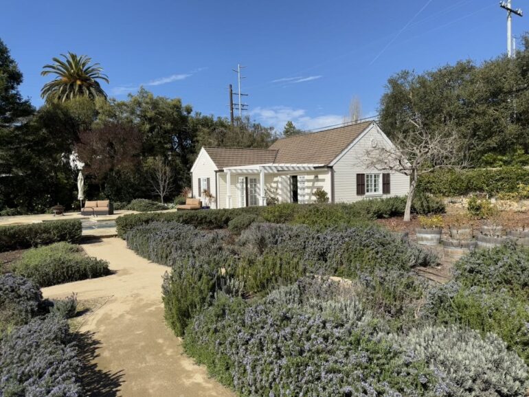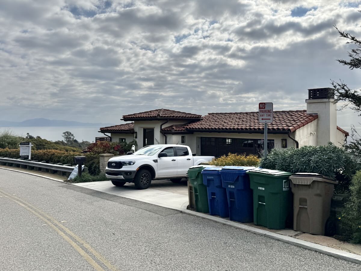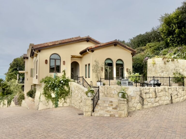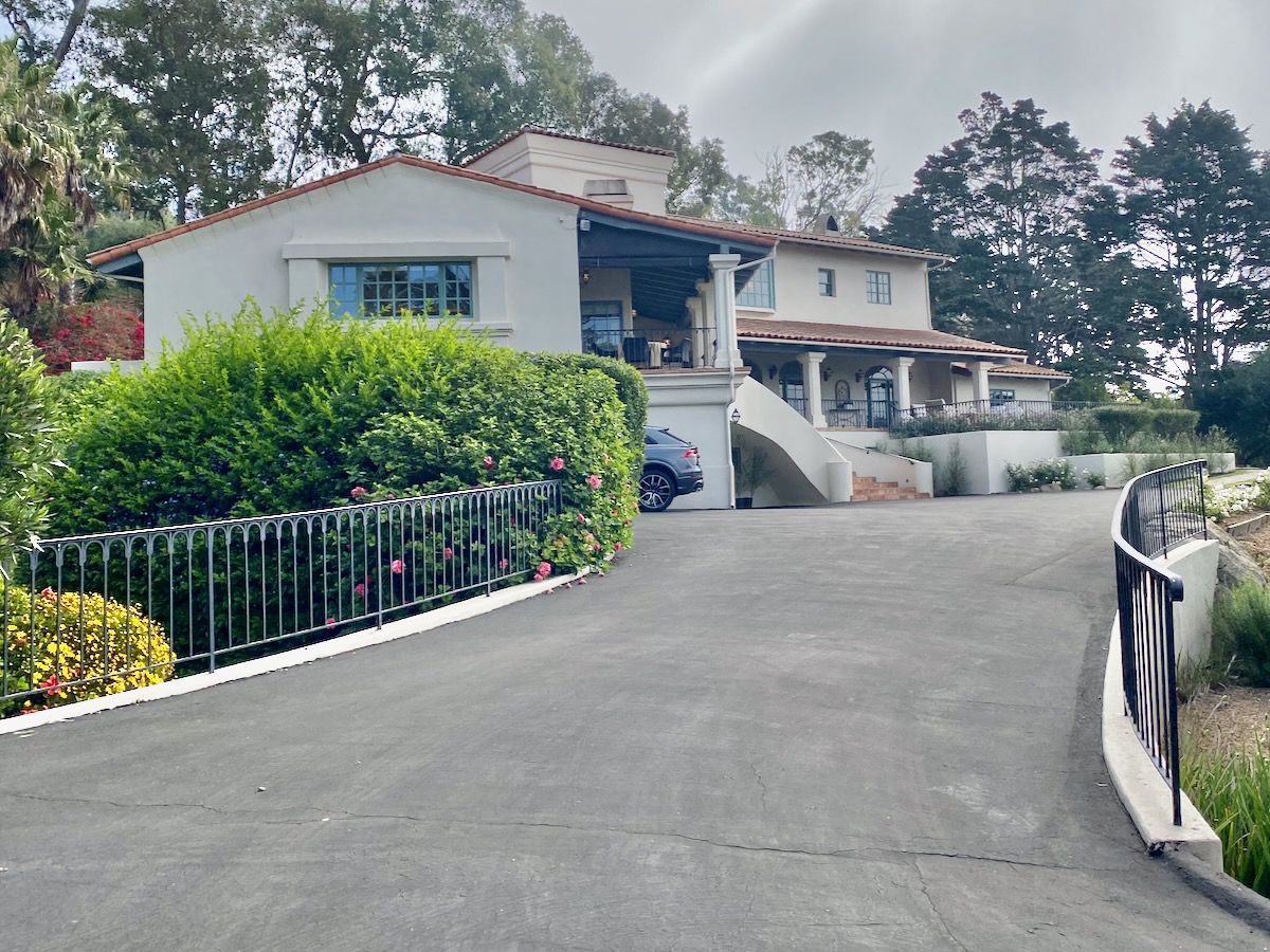 2015 Mediterranean drops down the hillside on a dazzling Alta Mesa street.