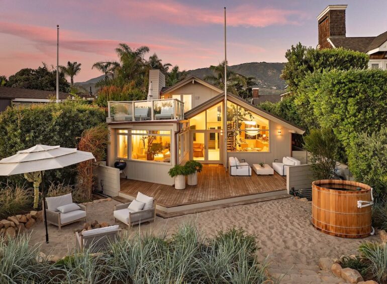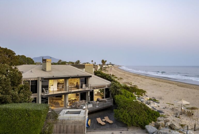 Kick your feet up at 3519 Padaro Lane, a five-bedroom, four-bathroom retreat that radiates modern elegance at every turn. Soaring windows, a sculptural floating staircase, and interiors enriched with rift-sawn oak cabinetry, custom doors, and bespoke lighting set the stage for modern living. The airy interiors flow effortlessly between inviting entertaining spaces and intimate rooms for relaxation. The tranquil primary suite embodies coastal luxury with private ocean-view and garden-view decks and a spa-like bath. A peaceful escape, the detached two-bedroom guest house offers its own tropical retreat, while outdoors, lush landscaping, multiple fire pits, sitting areas, and a cedar hot tub create a private beachfront haven.