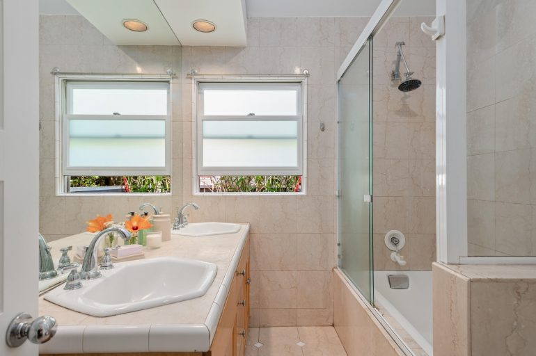 In my recent walk through the Hedgerow, I mentioned the fork at the northern end of Miramar Avenue, where the street splits into two private lanes. Near the end of the right fork, next to the Palm Springs–style midcentury that just got renovated, is 234/236 Miramar Avenue ($5.45 million): a “.6-acre parcel featuring a single-level 4/3 main residence, spacious guest cottage, two-car garage, and mature gardens and specimen plantings; plus a .65-acre undeveloped parcel with a Montecito Water meter.” The house is a teardown; the prospect of a 1.25-acre lot well off the street is juicy, to say the least. I’m surprised it’s not already in escrow.