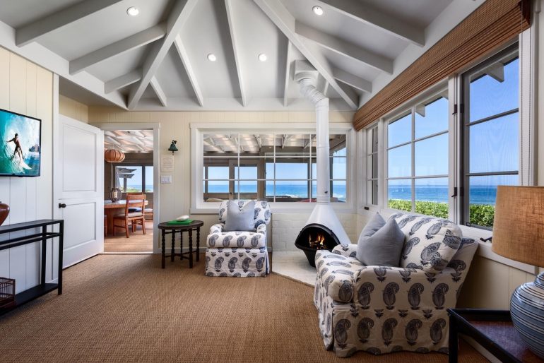 At 3557 Padaro Lane ($12.95 million), the toughest choice of the day is whether to sit inside the enclosed porch, step outside to the large beachfront deck, or venture onto the sand. The two-bedroom main house and detached guest house want some updating—but maybe not too much, to preserve the easygoing vibe.