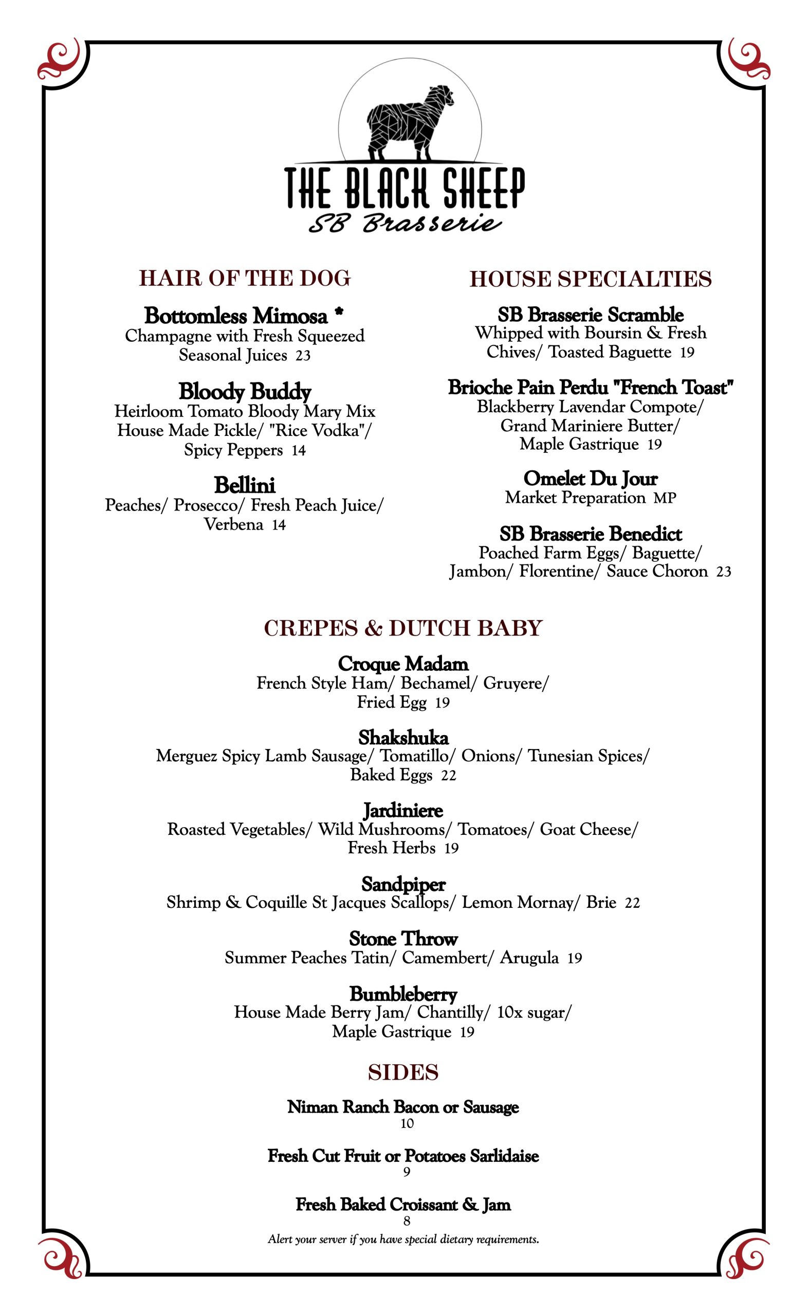 ••• The Black Sheep is dipping a toe into brunch service with a “crepe and Dutch baby pancake pop up” with bottomless mimosas on Sunday, August 27. Reservations are recommended but walk-ins are welcome.