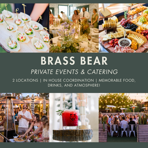 At Brass Bear, we believe food and drinks should be as memorable as the occasion itself. With two Santa Barbara locations—our lively Funk Zone patio and our expansive Uptown venue—we offer spaces perfect for weddings, rehearsal dinners, holiday parties, and corporate gatherings. With in-house coordination, customizable menus, and craft beers, wines, and cocktails, we make it easy to host a seamless, memorable event. Whether you’re envisioning an intimate dinner, a festive cocktail party, or a full wedding weekend, our team delivers the food, drinks, and atmosphere that make every celebration uniquely unforgettable.