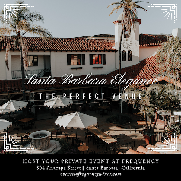 From milestone celebrations to intimate gatherings, Frequency offers the quintessential Santa Barbara setting for your private event. Nestled in the historic Presidio, our elegant space combines modern design with timeless charm. As a family-owned and operated winery, we pair handcrafted wines with warm, attentive service to ensure a truly luxurious and memorable experience for you and your guests.