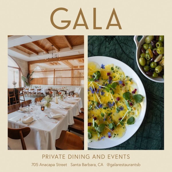 Gala features a stunning indoor and outdoor bar with beautiful arches, with seating up to 45 on the patio and up to 50 guests in the dining room. It’s the perfect space for your next celebration, just blocks away from the Santa Barbara County Courthouse. From rehearsal dinners and weddings, to corporate dinners or birthdays, our team will make sure the event is beautiful and every detail is accounted for. Our farm-to-table dinners and fresh cocktails make for an unforgettable evening with warm hospitality and curated menus. Please contact us at [email protected].