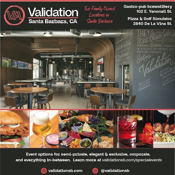 Validation’s two locations feature upscale facilities with a casual atmosphere, elevated eats, delicious craft beer and cocktails; the perfect venue for any type of gathering. In the heart of the lively Funk Zone, the headquarters showcases our craft beer Brewery / Distillery, providing a beautiful backdrop with ample outdoor space for games and mingling. While the new Validation Annex on De La Vina adds NY-style pizza to our event menu and indoor golf simulators for a unique event experience. We are a local, family-owned business that will be thrilled to help you host your next party.