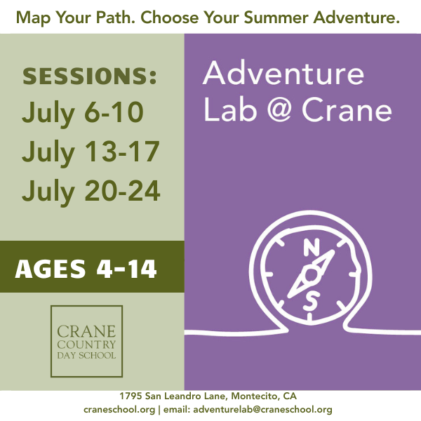 Adventure Lab @ Crane! Skip the ordinary and enroll your child in an adventure that offers true growth and endless smiles. We’re combining the dedicated, passionate educators of Crane School with the sun-soaked fun of a classic Santa Barbara summer camp. With exciting programs for ages 4 to 14, there truly is something for everyone! Our small-group instruction creates a cozy, supportive atmosphere where every week is a deep dive into your student’s passions—whether your camper is rolling up their sleeves in our Design and Engineering Center, hitting the high notes up on stage, diving into their next creative story, or hiking the local trails. Adventure Lab @ Crane transforms our stunning campus into a three-week hub of creativity and discovery this July. Programs run daily from 9 a.m. to 3 p.m.—spaces are filling up quickly, so secure your student’s spot today!