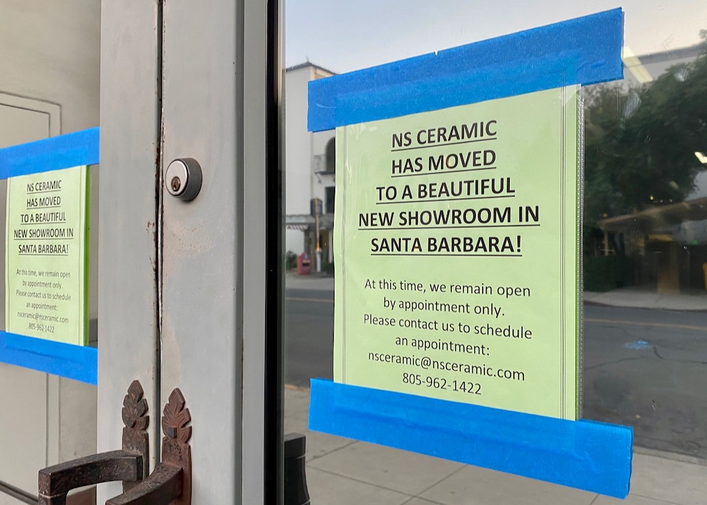 ••• NS Ceramic has left its cool building at 25 E. Ortega Street. The sign on the door is cagey about the new location (602 E. Montecito St.), likely because the shop has shifted to appointment-only.