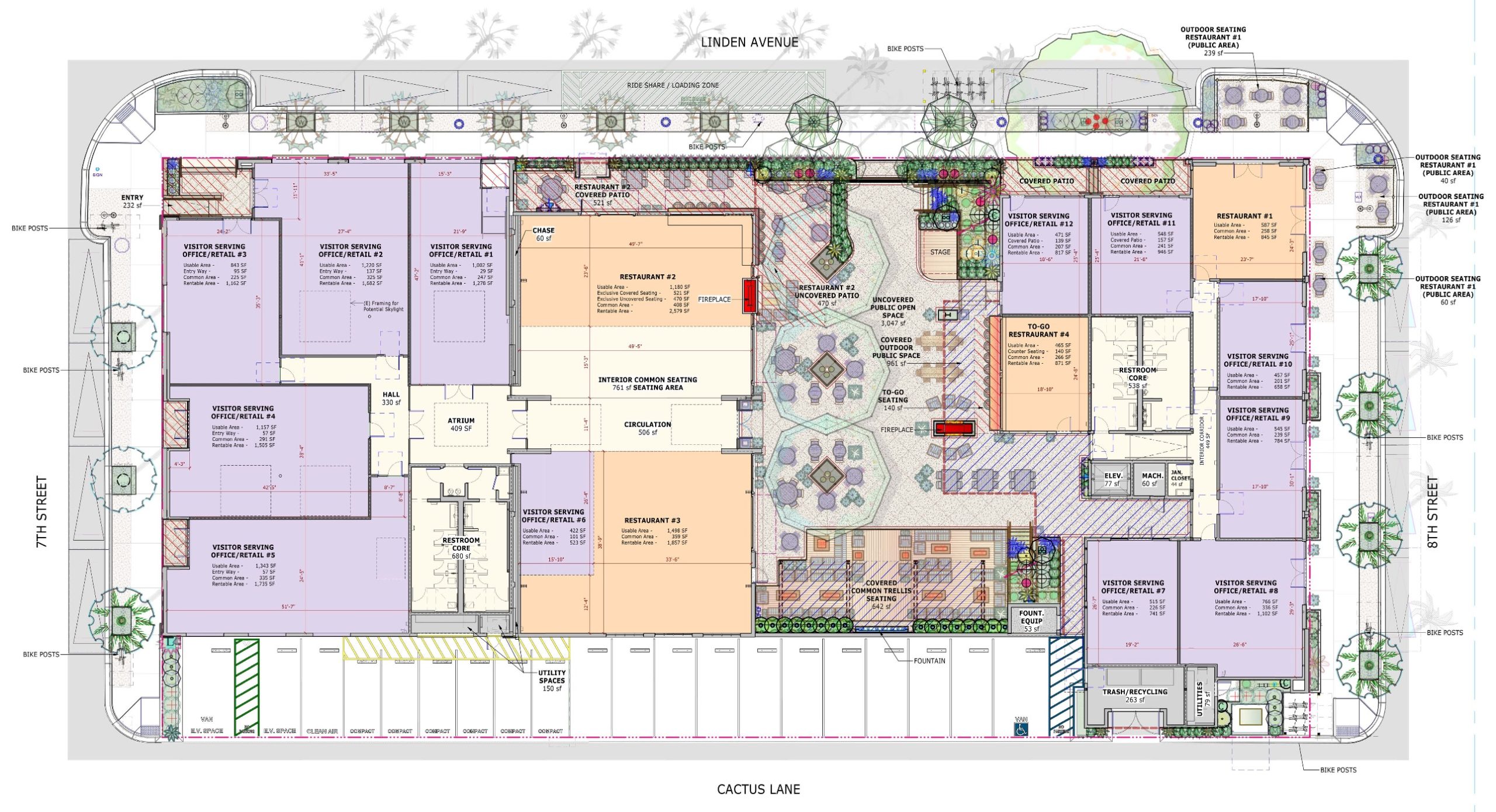 P.S. In the floor plan below, Bettina is Restaurant #3, Old Town is combining Restaurant #1 with Retail #10, and Ramon Velazquez is combining Restaurant #4 with Retail #12.