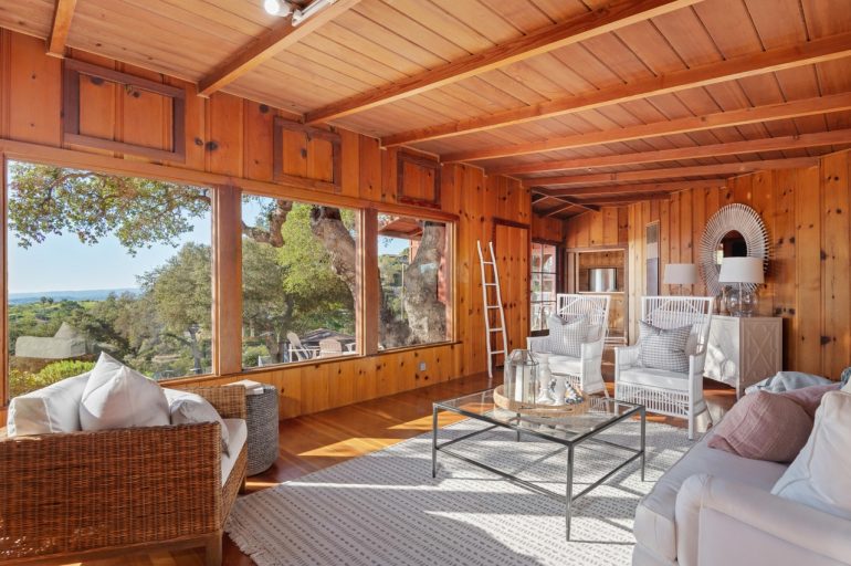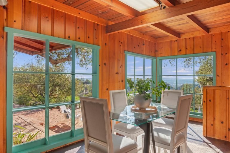 More glass brick! (Sorry, it’s a trigger.) I kind of love the knoll-top setting of 200 Ellwood Ridge Road ($2.9 million), with the driveway encircling the house. The interior is a total redo, unless you’re fond of stenciling, in which case you’re in luck. The 4.72-acre property, near Winchester Canyon, “features avocados, persimmon, banana, oranges, nectarines, pomegranate, jack fruit, grapefruit, mango, papaya, pecan lime and lemon, plum, rose, apple, mandarin, pluot, macadamia nut, pecan, mulberry… the list is endless.” (Doubt it.)