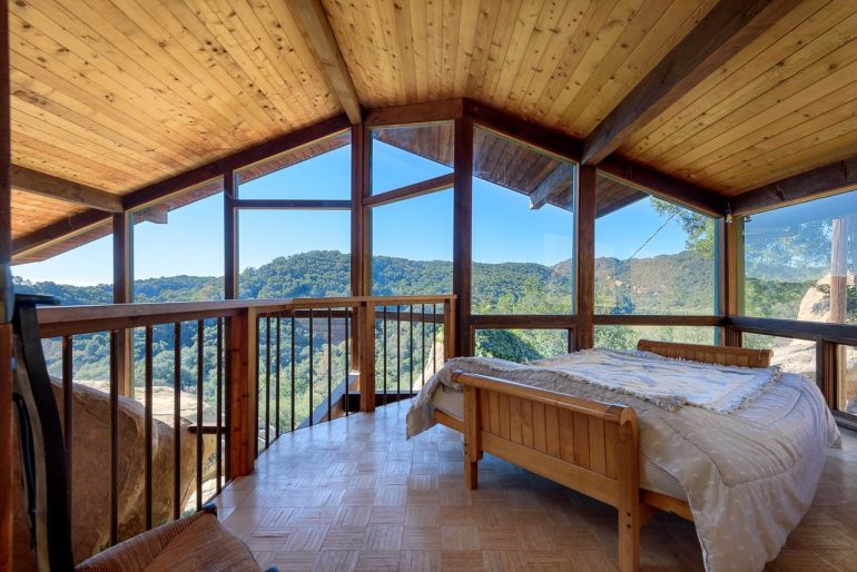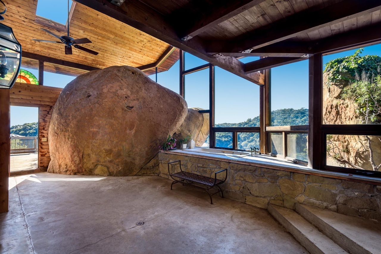 2942 San Marcos Pass Road ($1.8 million) is notable for the massive boulder just inside the front door, in what I guess is a sunroom-with-bathtub. And the bedroom is dramatic, if you don’t mind getting up at dawn.