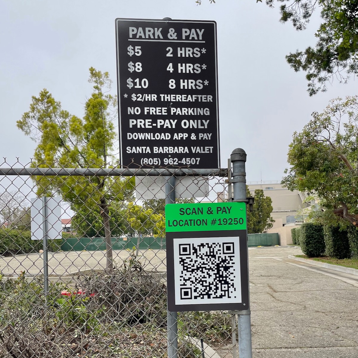 ••• The vacant lot at 102 W. De La Guerra Street, where a developer is proposing to build a five-story apartment/storage building is now offering paid parking. I guess the owner is squeezing some income from it while the project makes its way through the red tape. Thanks to P. for the photo.