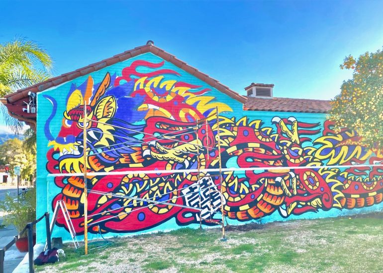 ••• “Year of the Dragon Mural Celebrates Asian Culture in Downtown Santa Barbara […] S.B. Trust for Historic Preservation and Artist DJ Javier Debut New Mural for Lunar New Year Festival/Exhibition on February 10.” It’s on the side of the Pickle Room building. —Independent UPDATE: BW asked how long the mural will be up. The submission to the Historic Landmarks Commission was for 12 months, and I’ll try asking the Santa Barbara Trust for Historic Preservation whether that’s what was approved. Next up is the Year of the Snake, so perhaps we’ll get a new mural in early 2025…. UPDATE: Yep, it’s up for a year.