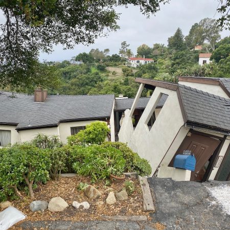 The garage started sliding into the house a couple of months ago, and now the house is moving down the ravine.