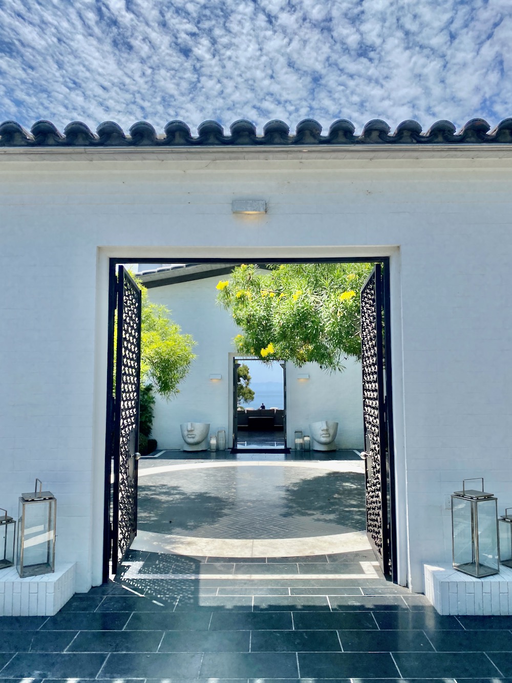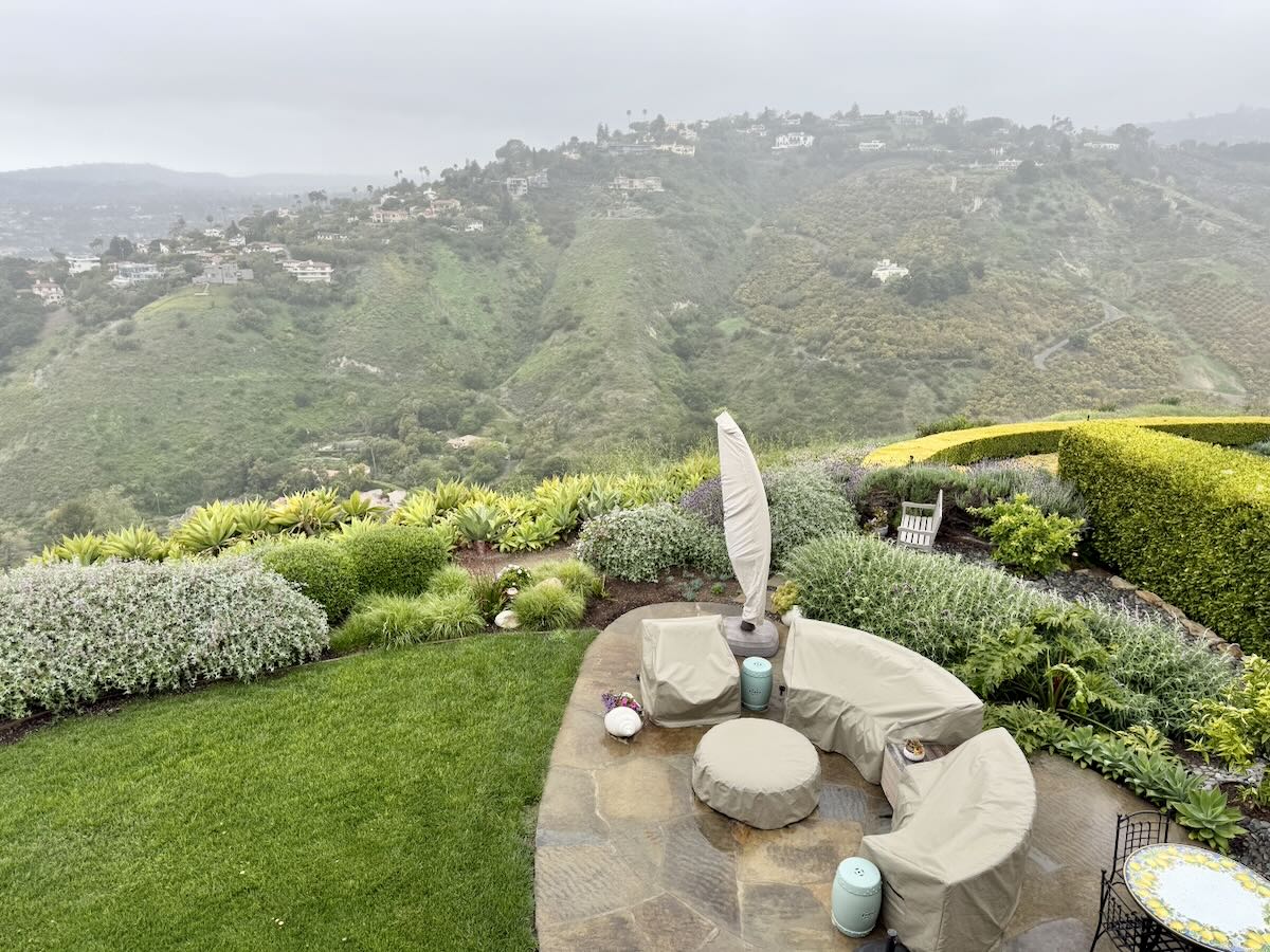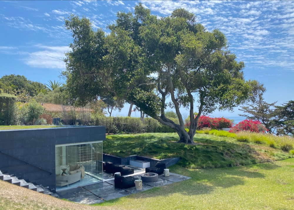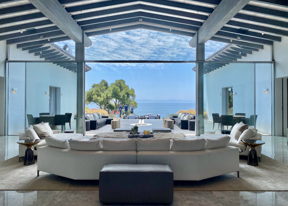 1970 six-bedroom by Wallace Neff on the bluff’s edge in Hope Ranch. It has striking moments—like that guest house bunker—but the finishes are over the top.