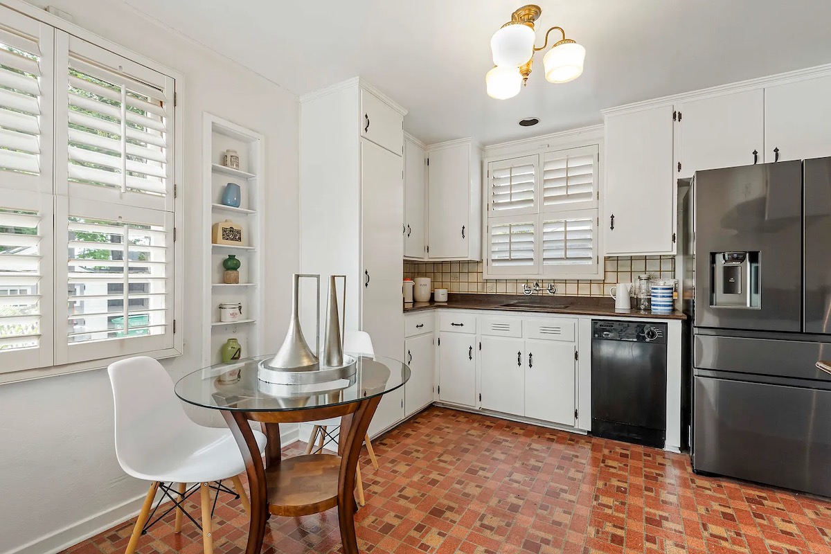Speaking of high contrast, the seller of 2070 East Valley Road ($4.4 million)—who paid just $2.65 million for it this past January—went all in on black and white. There is 1930s quaintness in the ceilings and brick fireplace, but the floor plan poses challenges and the kitchen cabinetry looks like it dates from a time when refrigerators were much smaller. The main draw here might be the 1.17-acre flag lot.