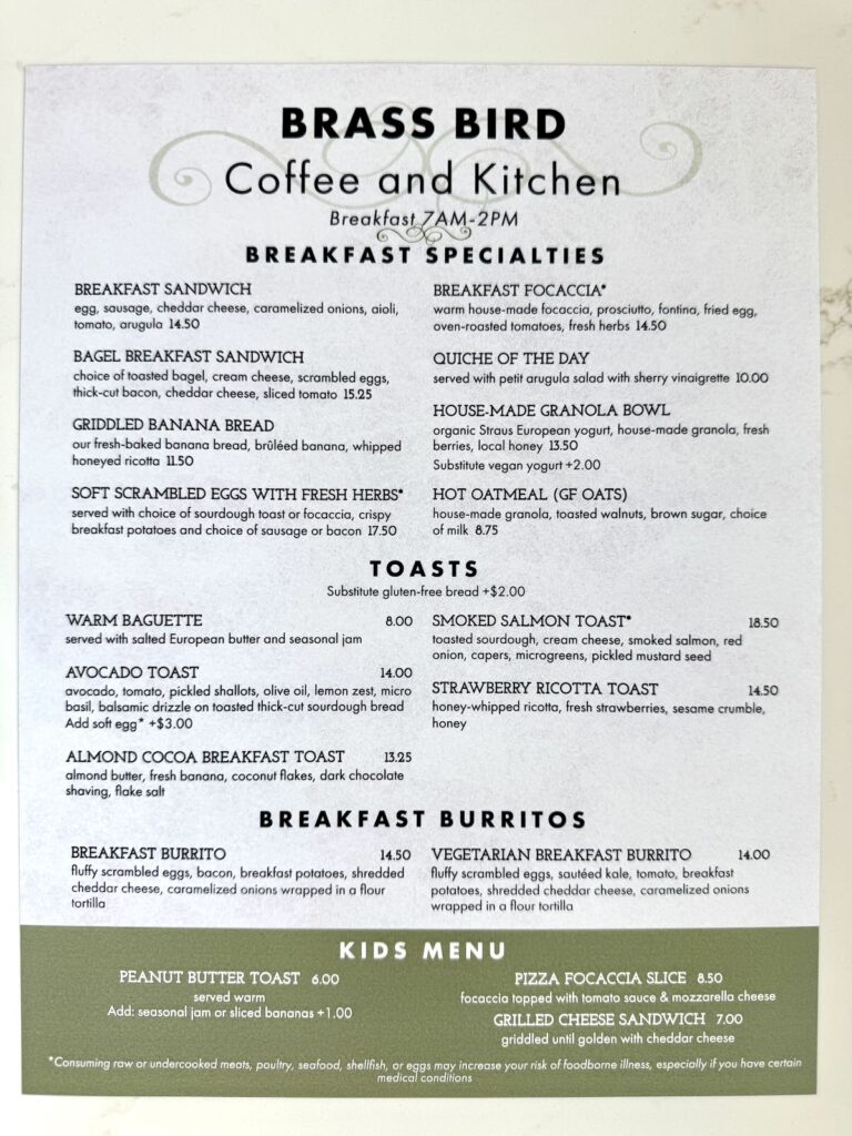 ••• Brass Bird Coffee & Kitchen has opened in the former McKenzie Market at 3102 State Street in San Roque. There’s a lot of outdoor seating, and the parking lot is one-way, with an entrance on Calle Palo Colorado and an exit (right turn only) onto State Street.