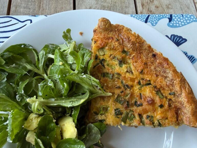 ••• Coyote’s Market in Carpinteria (4945 Carpinteria Avenue, just west of Linden) opens April 11. The meat and fish cases should be ready, as will pantry items, and most exciting to me, there will be sandwiches. The other prepared foods will be at 75 percent or so, filling out over time. Below: the delicious bacon-and-spring-onion quiche sold as a preview.