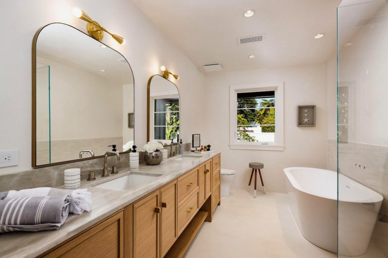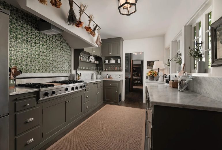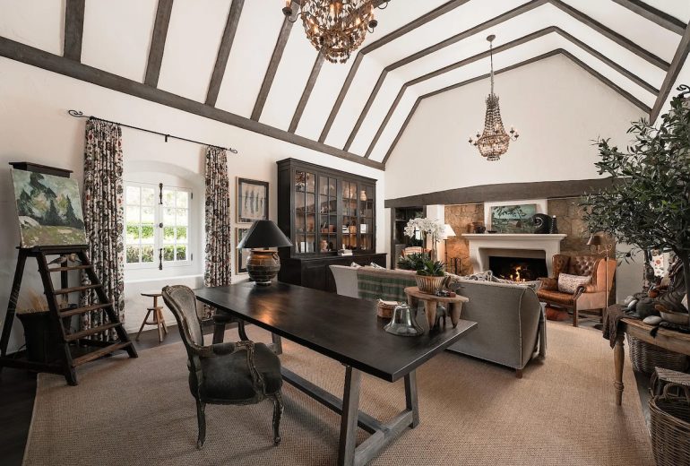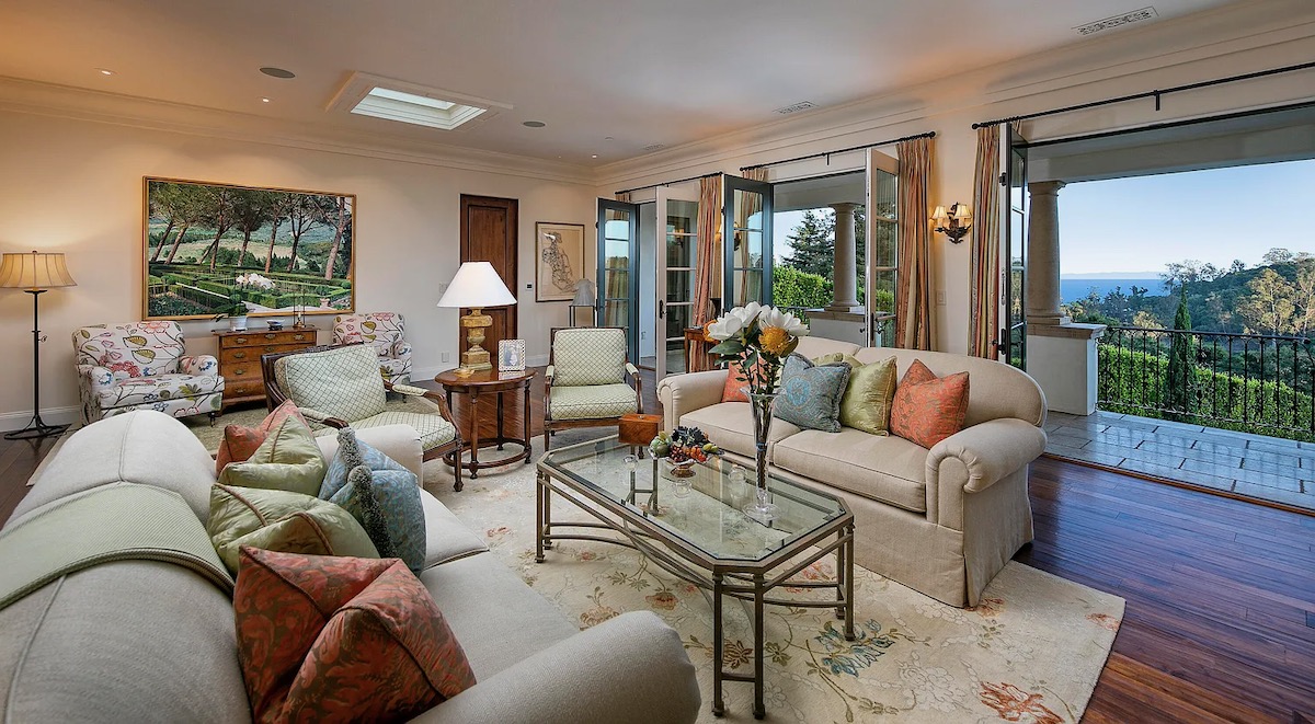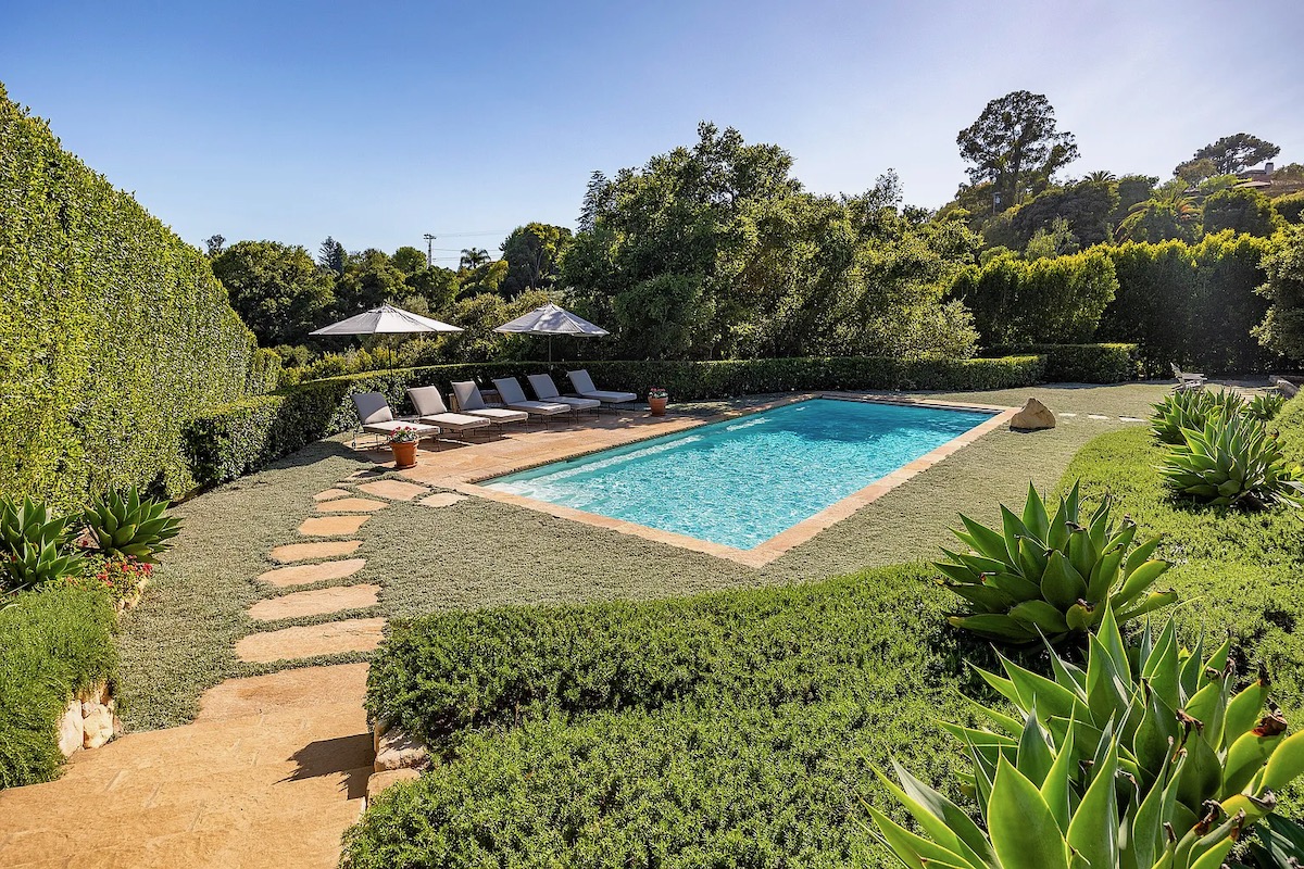 Even though I’m on record—repeatedly—for being weary of the Mediterranean-inspired interiors of the past three decades, I found 733 Knapp Drive ($9.975 million) appealing (which isn’t to say I wouldn’t bring them up to date). The livable floor plan has the primary bedroom on the main floor, and three—or two, if en suite—guest rooms below. The 1.19-acre lot continues down the hillside, with four levels of terraces, the last of which has a pool and bocce court. (Pack snacks before you head down.) As a sort of bonus, the property also includes a guest house on the other side of Cottage Lane; it’s original to the Arcady estate and undeniably cute.