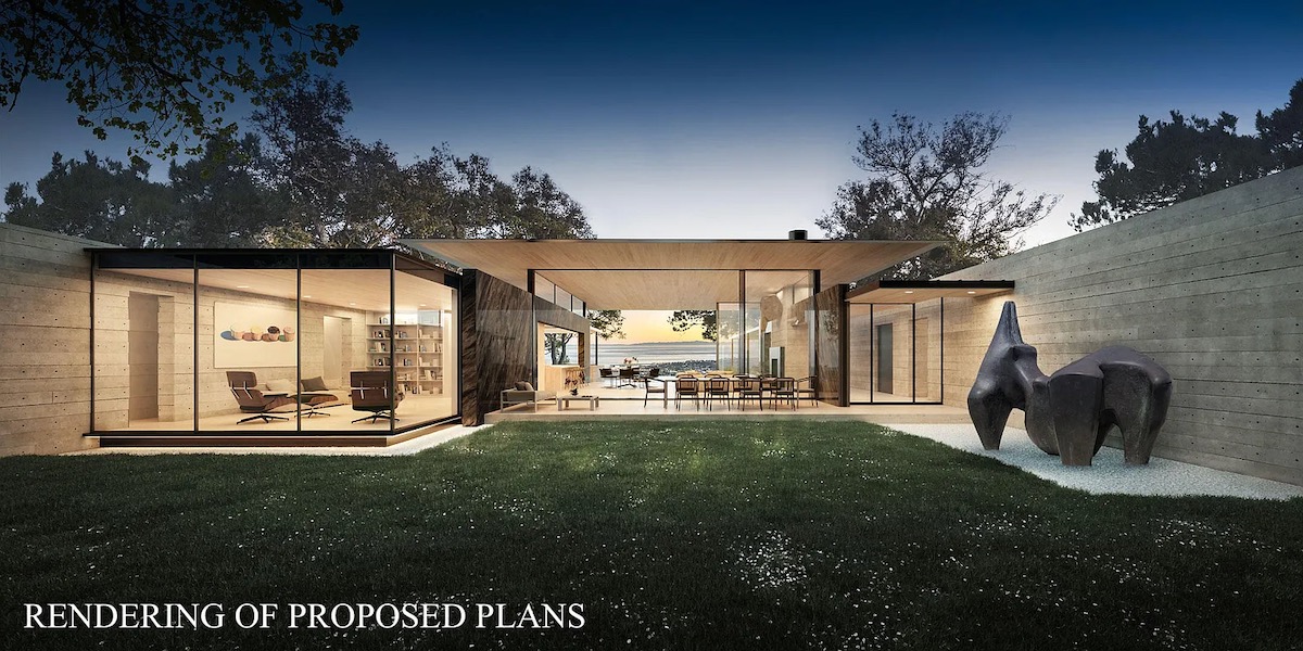 The 1.8-acre lot at 1326 Hillcrest Road also comes with with approved plans; it can be purchased as is ($5 million) or with completed construction ($15.75 million). The neat thing about the lot is that it straddles the ridge, so you get city/ocean views in one direction and mountain views in the other. The Warner Group’s design for the four-bedroom house has contemporary elan, but the garage is down the hill in guest-house territory, rather than near the house. The seller paid $3.75 million in September 2020.