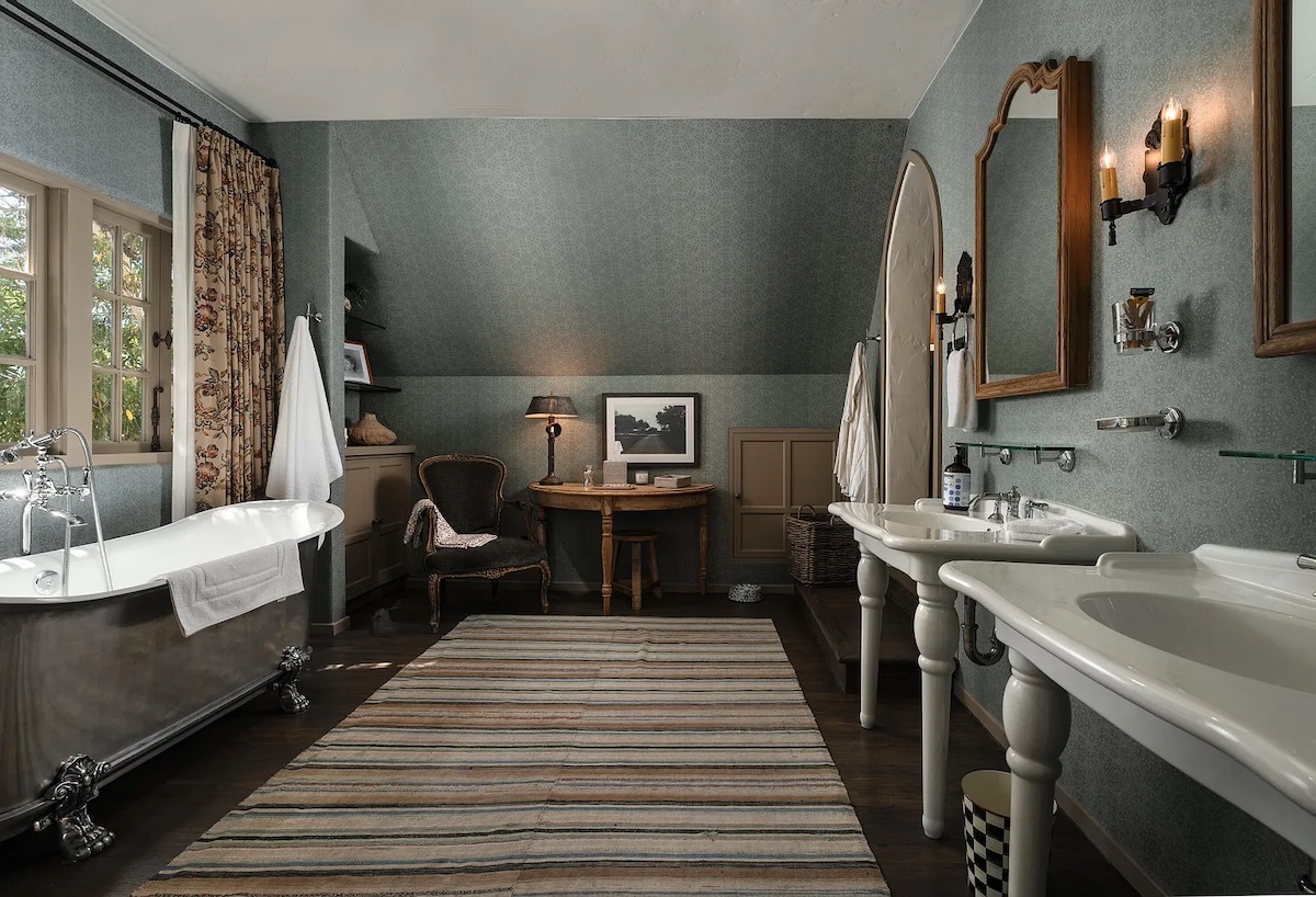 At the other end of the size spectrum is 3050 Via Rancheros Road ($17.9 million) out in the valley. The rooms in the 1986 main house look big enough to play pickleball inside—poor, lonely bathtub—and if you feel Goldilocks fever coming on, you can always head over to the other two houses, the four apartments, or even the four barns on the 71-acre property.
