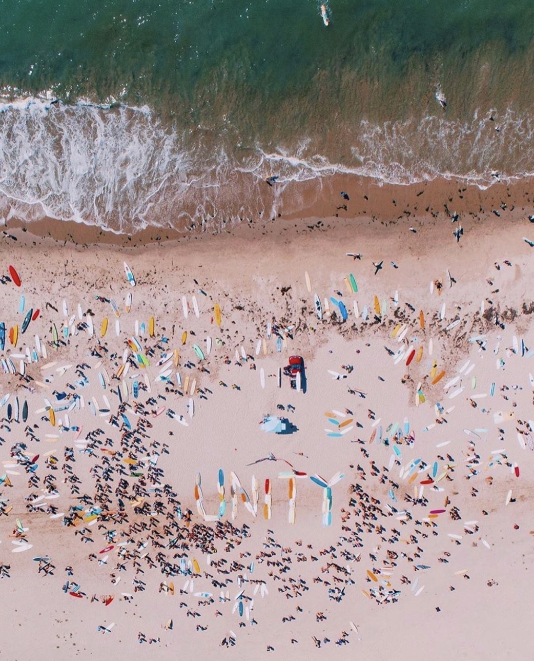 ••• “A Santa Barbara memorial for George Floyd took to the ocean on Saturday morning as hundreds participated in a ‘CommUnity’ Paddle Out at Leadbetter Beach to pay respects to the man who was killed while in police custody in Minneapolis last week and to support the Black Lives Matter movement. An estimated 250 participants of all ages grabbed surfboards, stand-up paddle boards, boogie boards, surf skis and kayaks, floated out about 150 yards off shore and formed a large circle.” —Noozhawk (and the photos at top and below are by Blake Bronstad, who is selling prints of them and others from the rally, with proceeds going to a Black Lives Matter organization).