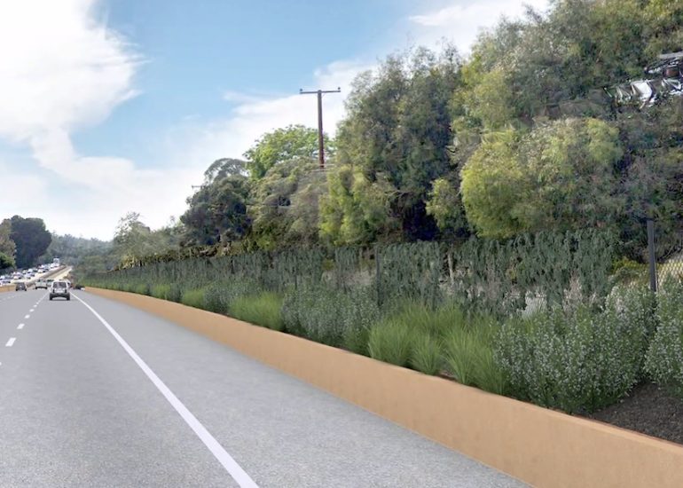 ••• The Montecito Association reports that there will not be sound walls alongside the Montecito section of Highway 101 after all, due to flood-control regulations. “In place of the sound walls, chain link fencing planted with vines and landscaping will be proposed.” (Can we agree that the sound walls in Carp are a little Inland Empire?) The rendering is by the Highway 101 design team, via the Montecito Association.