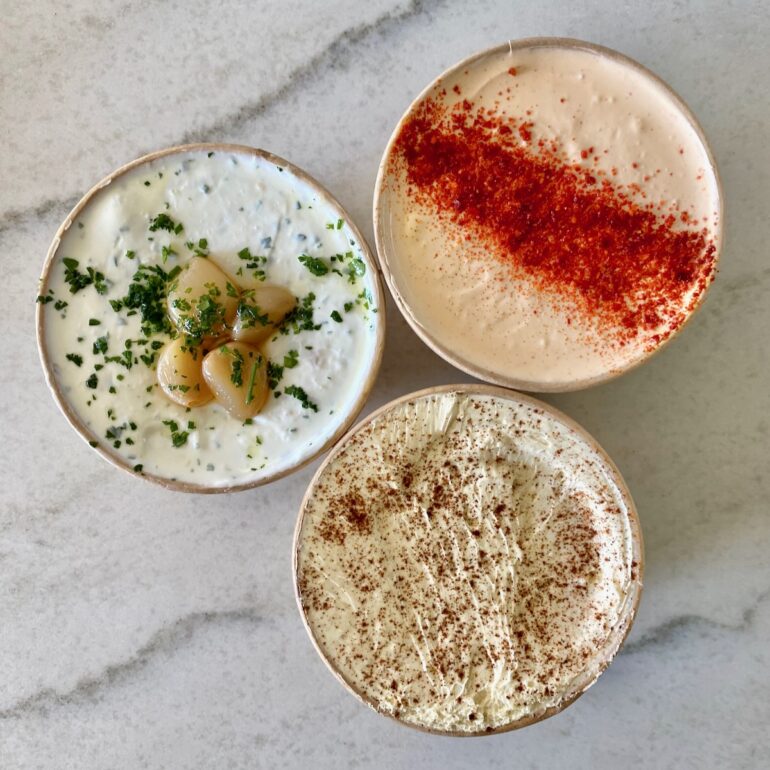 ••• Having been warned that Mother Dough bagels sell out quickly, I pulled myself together and ordered right at noon last Tuesday (for pickup on Saturday)—waiting for the second hand and refreshing the website page took me back to pandemic times. But I was so worried that I would get beat out that I checked out as soon as I had three everything bagels in my cart. Happily, founder Jennifer Gonzalez-Neely recognized my name and gifted me three other flavors (sesame, salt, and furikake) and three spreads (garlic herb cream cheese, gochujang cream cheese, and whipped honey butter). My husband and I hoovered down two everythings as soon as we returned home—half with the garlic herb spread, and half with the gochujang spread. Delicious! I will be going back for more. P.S. Read more about Mother Dough in American Riviera Media‘s profile.