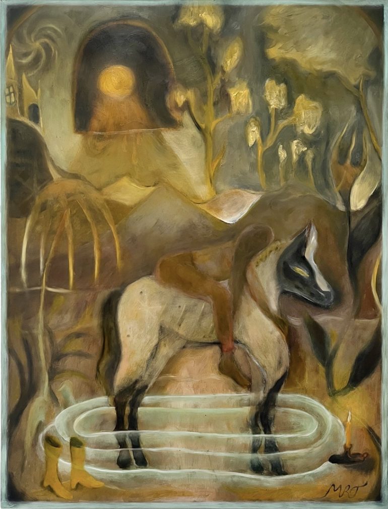 ••• Up now at My Pet Ram: Golden Hour, “new work by Stephanie Guerrero, Cary Hulbert, and Margaret Thompson. The exhibition showcases mysterious landscape paintings with seemingly natural forms cast in uncanny yet captivating light.” Below: Thompson’s “Neverland.”