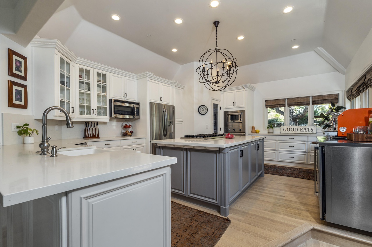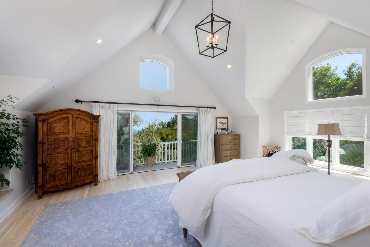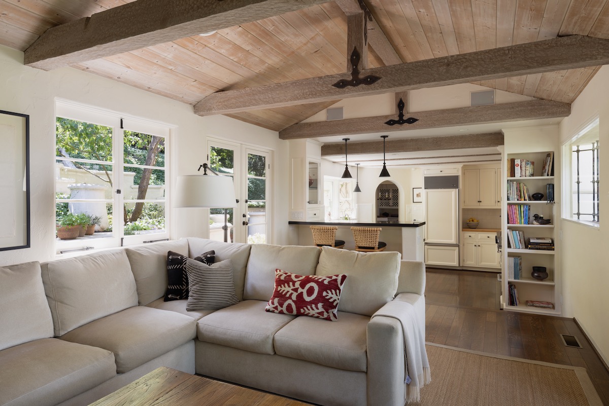 On a one-acre lot in the northwest corner of West Mesa—relatively far from the beach but close to the Douglas Family Preserve—is 417 Linda Road ($3.35 million), a 1948 three-bedroom that looks like the homestead from an old Western. (Compliment!) Inside is workable with one main caveat: the two bedrooms upstairs, one of which is the primary, share a hallway bath.