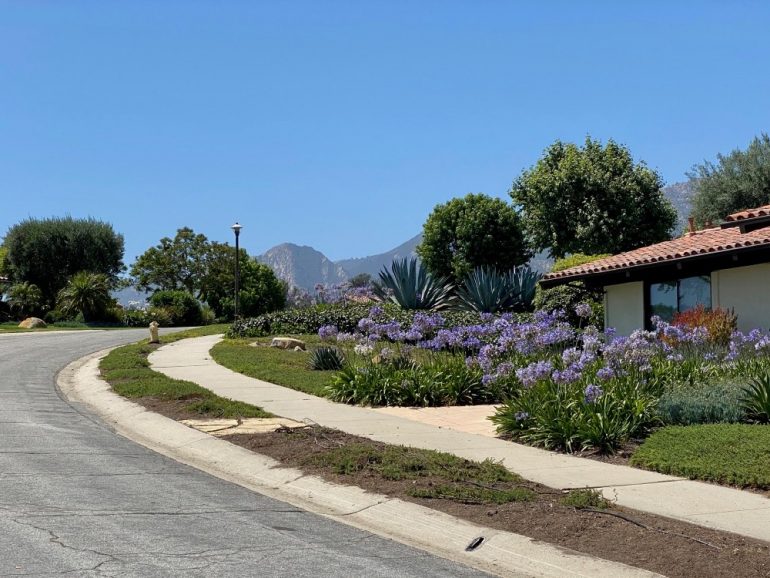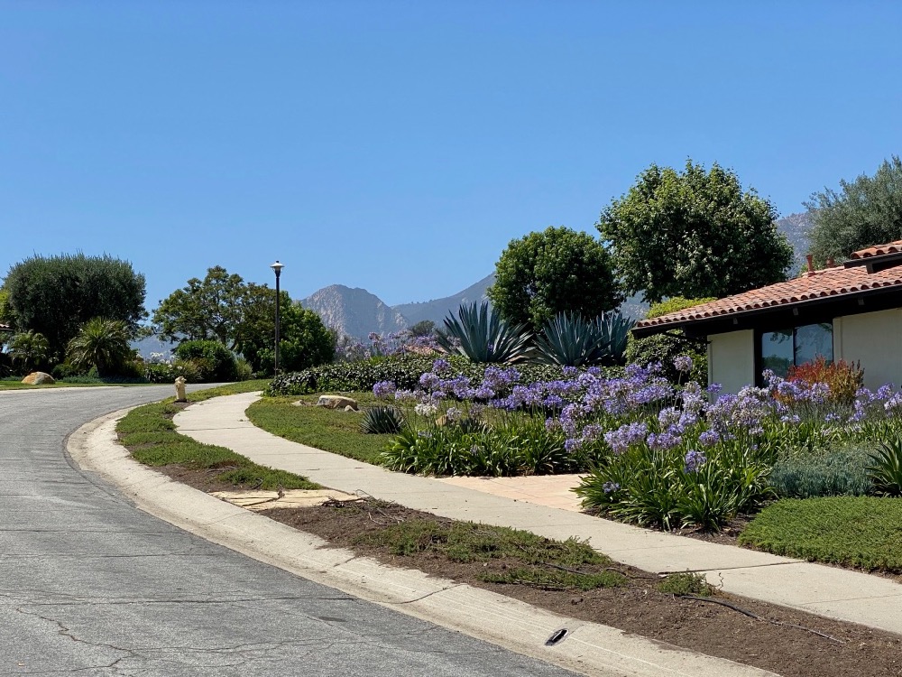The final offshoot street on this walk was Coronada Circle. One of the things I love about Santa Barbara is the variety of architecture, but the developer of Coronada Circle clearly doesn’t share that opinion. Every house on the street looks nearly identical, and HOA regulations presumably keep it that way. You have admire the thoroughness of the uniformity—even the stop sign got bougied up.
