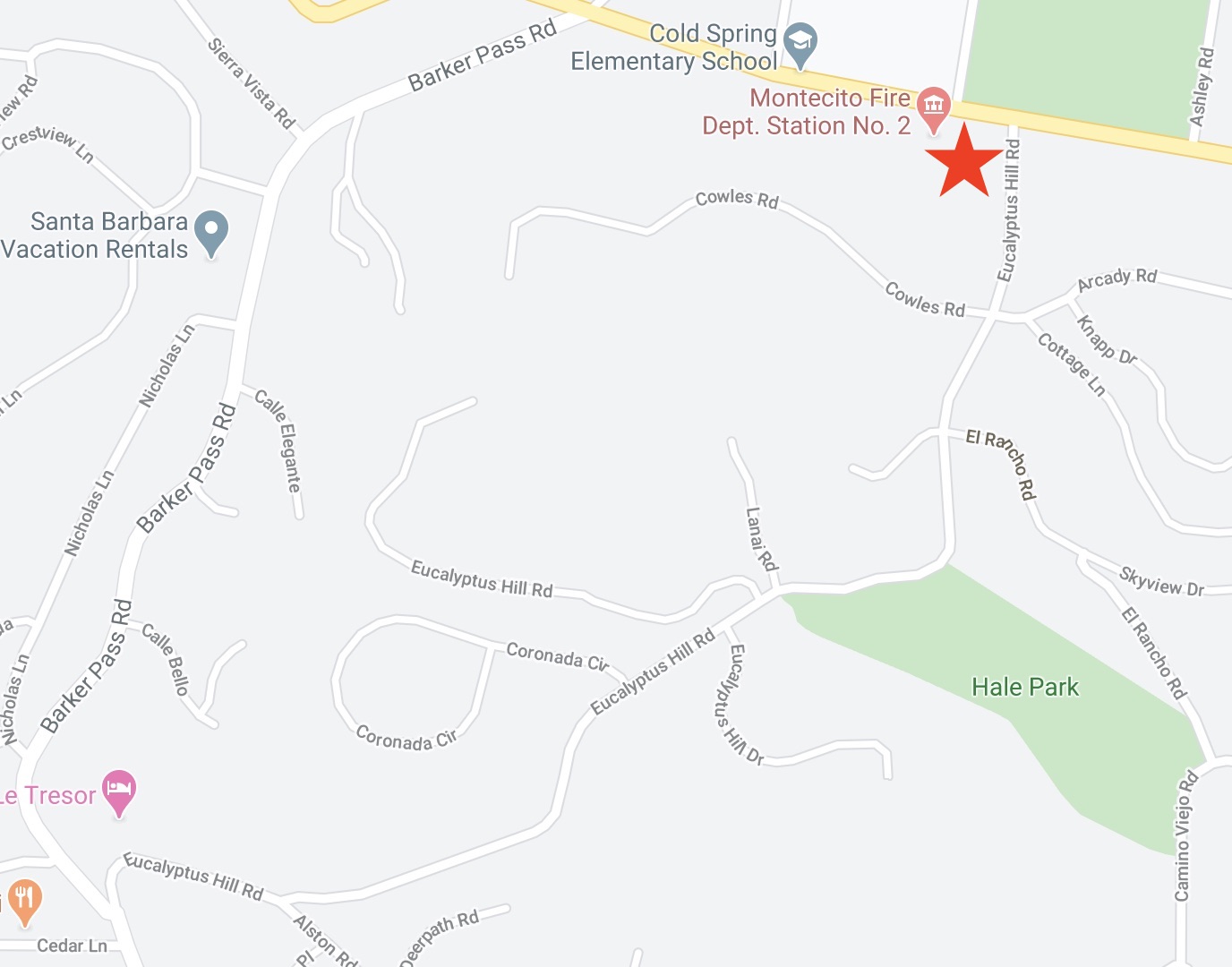A map of Santa Barbara city boundaries indicates that south of Hale Park is Santa Barbara, and north of it is Montecito. So Eucalyptus Hill Drive is definitely Santa Barbara, not Montecito. There’s a detail of the area at https://www.sitelinesb.com/wp-content/uploads/2022/04/Eucalyptus-Hill-Santa-Barbara-boundary.jpg—the yellow part is Santa Barbara.