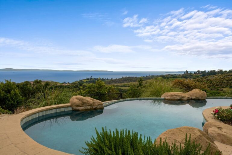 Upon entering from the front courtyard, you’re greeted by a dramatic great room with a postcard-worthy view. Great care has been taken throughout the home, where you’ll find floors of alder hardwood and vintage French tile, a glamorous wine room, a media room/library, an office/flex space, and even a loft for reading and meditation.