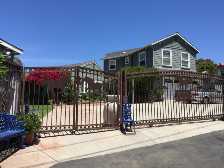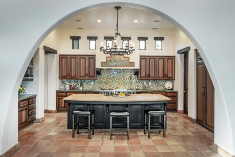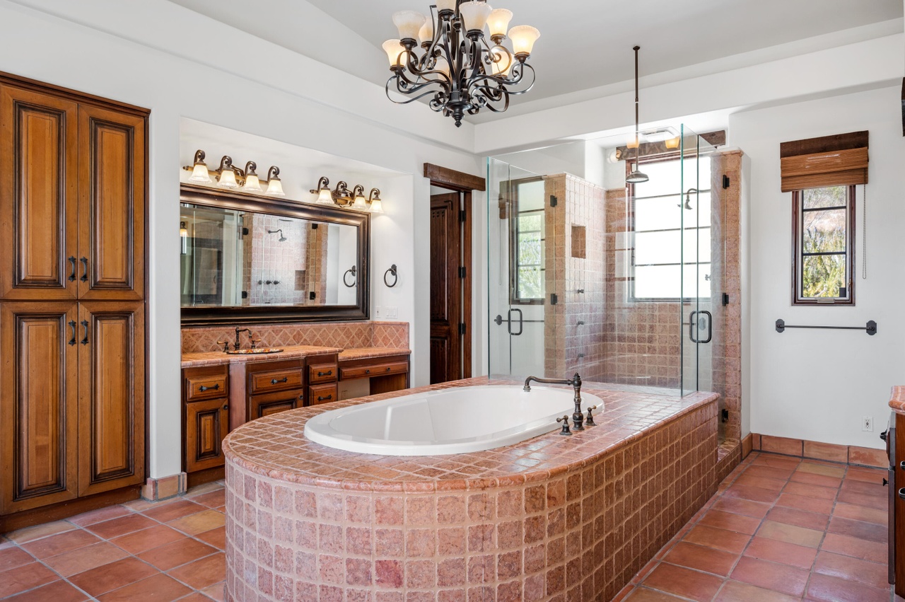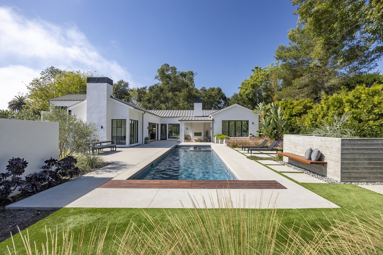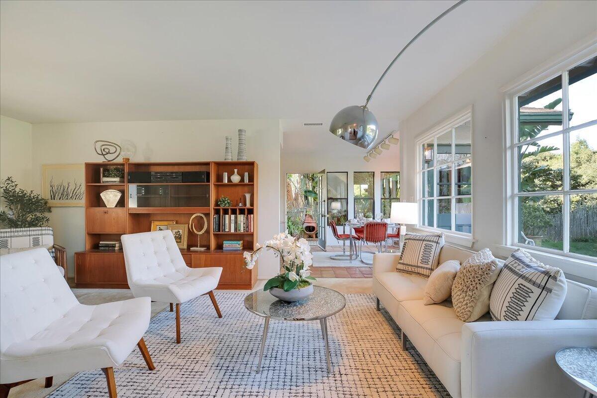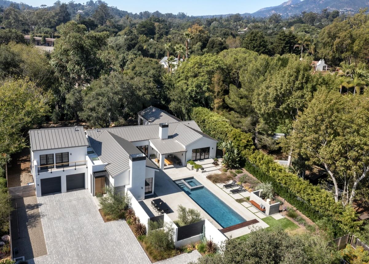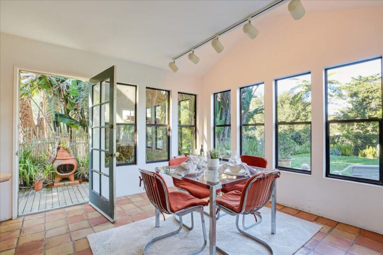 Styles collide at 4156 Vista Clara Road ($2.695 million), off Modoc Road. Many of the interiors have been given a glamorous glow-up, while others are resolutely normcore, and then there are Spanish-style remnants here and there…. (Was the kitchen ceiling painted that way? Or Photoshopped?) The .46-acre lot jams a lot in: three-bedroom house, two-bedroom apartment over the garage, pool, and even a corral.