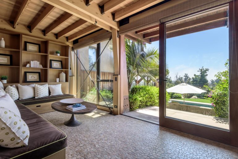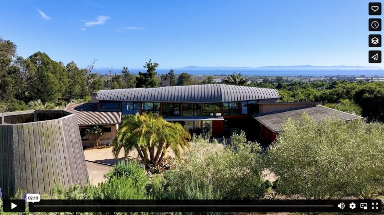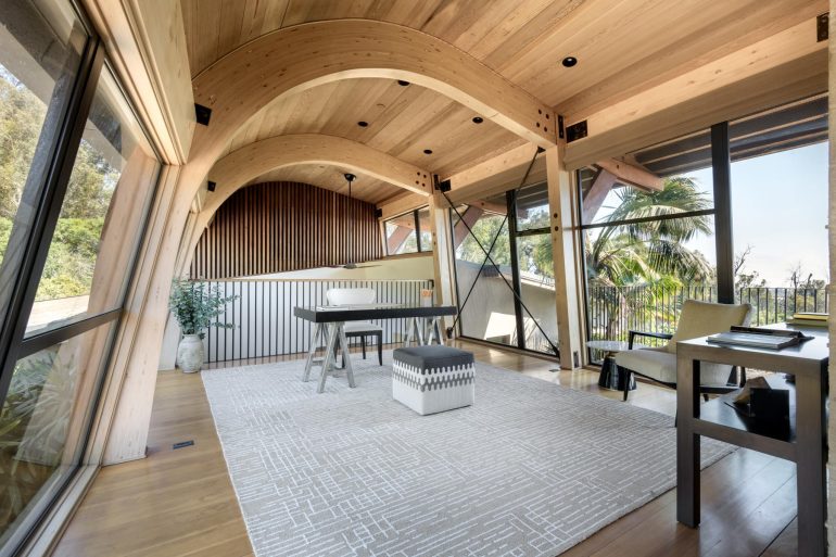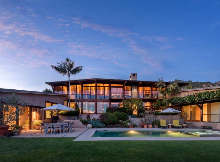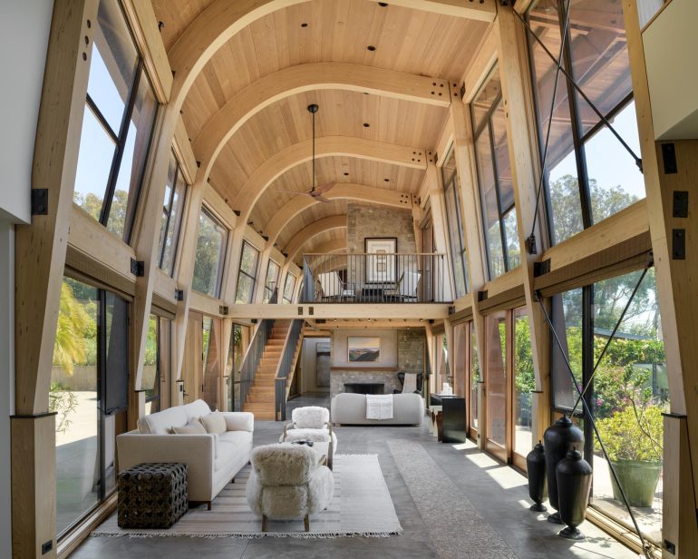 Enter the main residence and you will be greeted by a structural marvel boasting stunning curved roof lines, dramatic ceiling heights, and spectacular ocean views. The entrance hall form was inspired by the Chumash tomol, creating a harmonious, awe-inspiring structure that reflects the graceful and efficient design of a canoe.