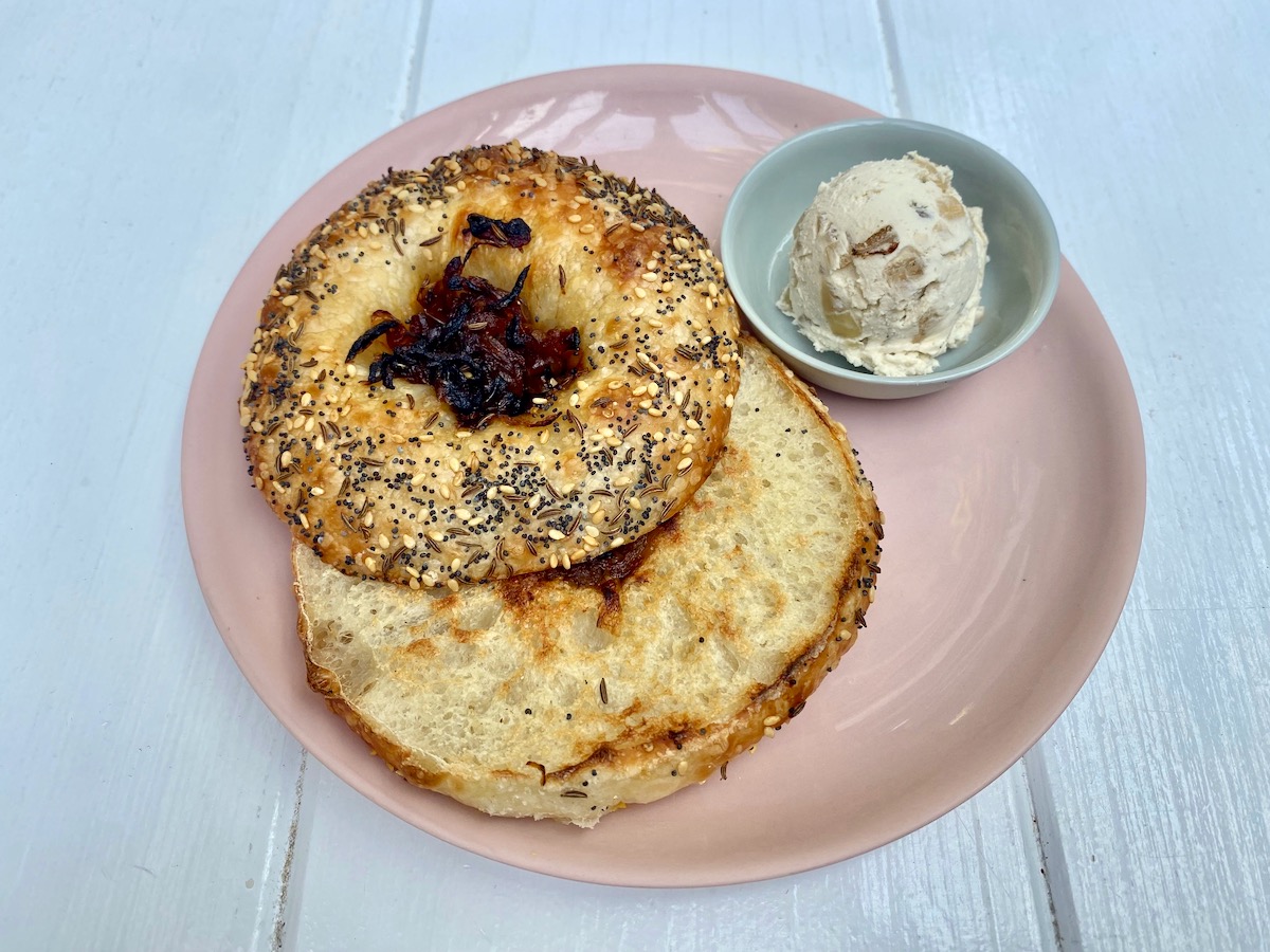••• Speaking of bagels, new menu items at Merci are always worth noting, and the bialys are a winner. Available seeded or unseeded, they come with Boursin cream cheese or French onion cream cheese (and lox if you’d like to upgrade). There’s also a quiche at breakfast, but I haven’t tried it yet.